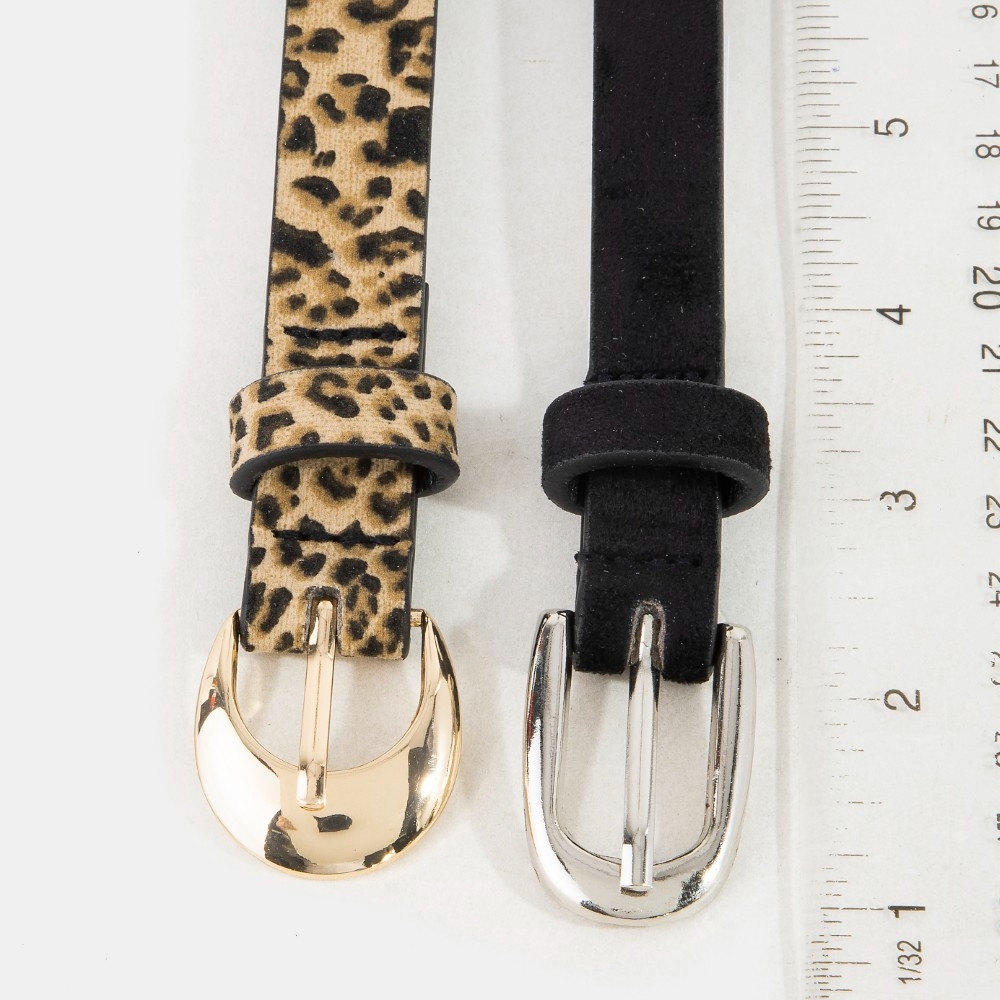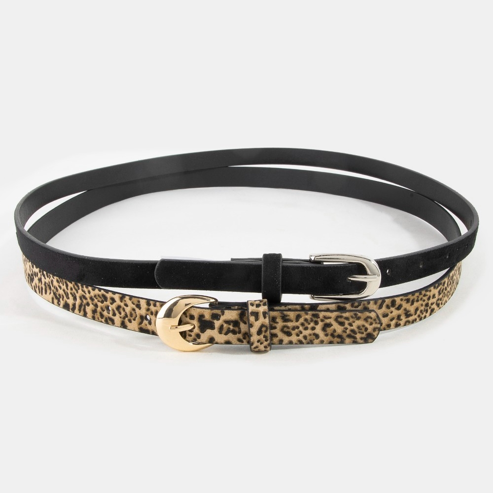 • Effortlessly chic and sophisticated, this belt set showcases a breathtaking black and leopard vegan leather design. This belt set is an effortless way to add some personality to your outfit. Available in MULTI. This item is sold in packs of 1.