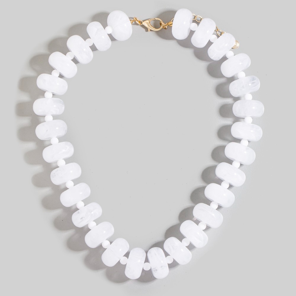- This season's hottest necklace set, this necklace set incorporates a remarkable bulky acrylic bead link design. Infuse your ensemble with a touch of sophistication using this versatile necklace set, a game-changer in the world of fashion. Available in GRN, JADE, PL, PNK, ORG and WHT. This item is sold in packs of 12.