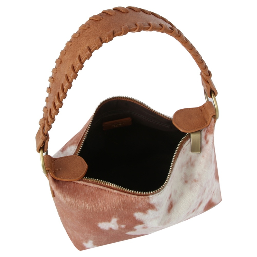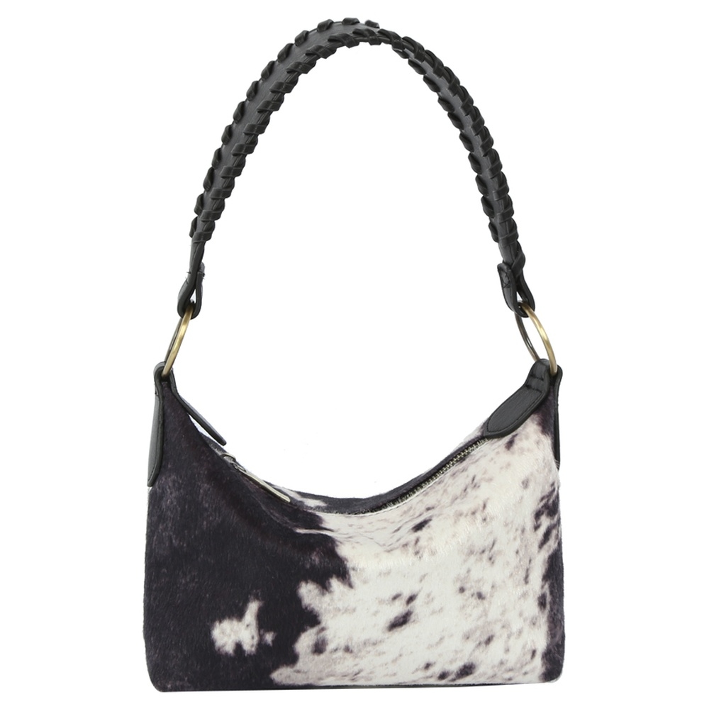 • The perfect way to add some edge to your look, this shoulder bag brings a one-of-a-kind calf hair cow printed bucket design. Master the art of accessorizing with this versatile shoulder bag, a key element for achieving a chic and polished look. Available in BK, BR. This item is sold in packs of 1.