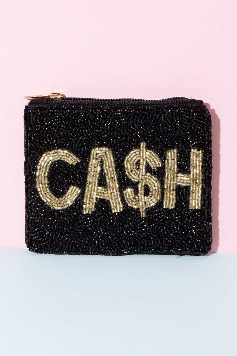 - A stunning piece that is sure to turn heads, this contains a special cash print beaded coin purse design. This versatile adds a touch of elegance to any outfit. This item is sold in packs of 2.