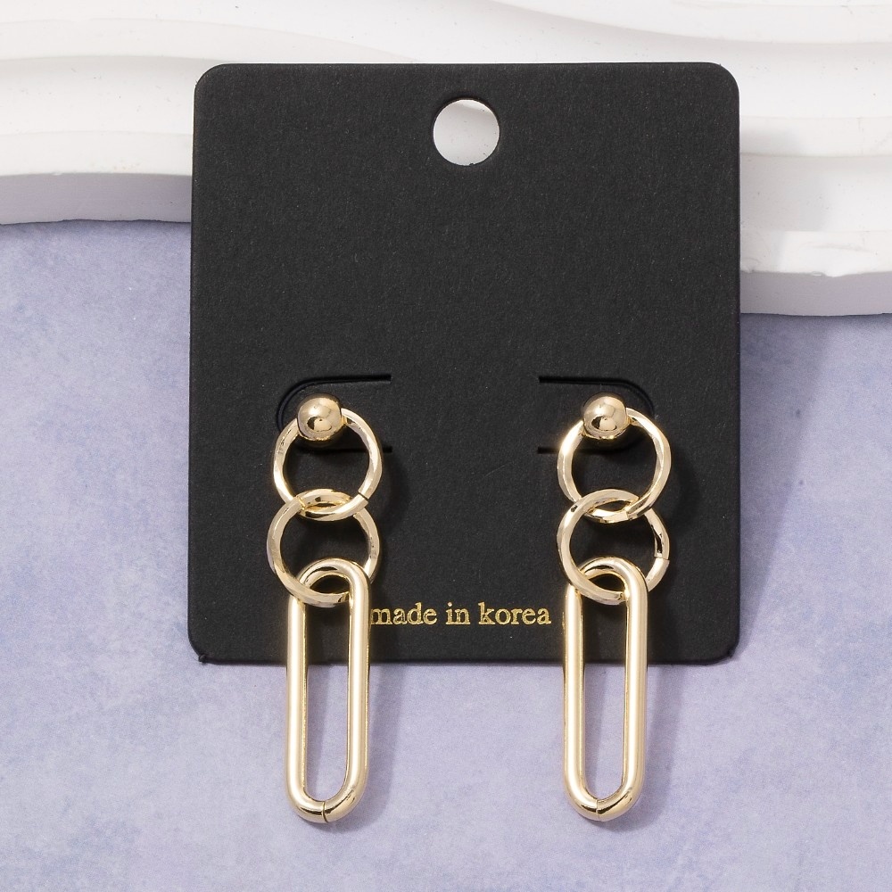 The epitome of sophistication and style, this pair of drop earrings reveals an intricate chain link circle & oval design. Redefine your wardrobe with this versatile pair of drop earrings, a timeless addition that brings an air of sophistication to any look. Available in G, S. This item is sold in packs of 1.