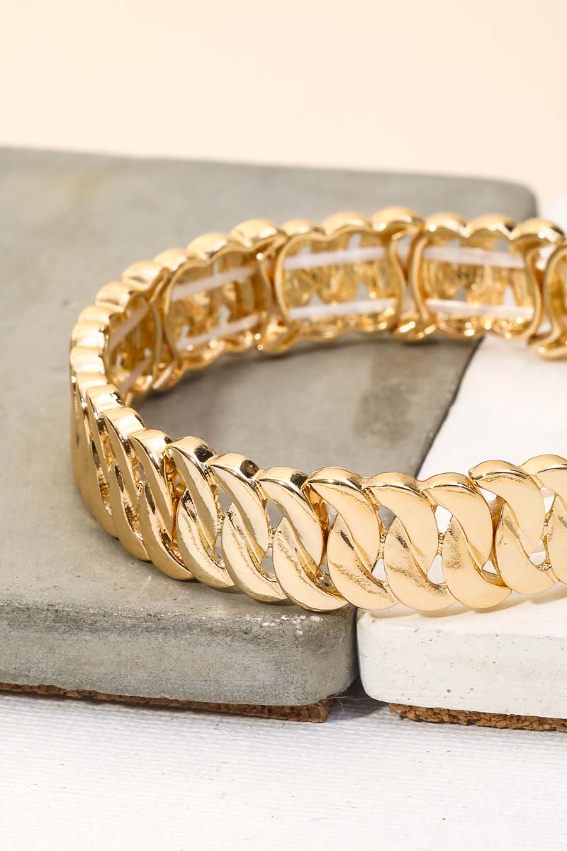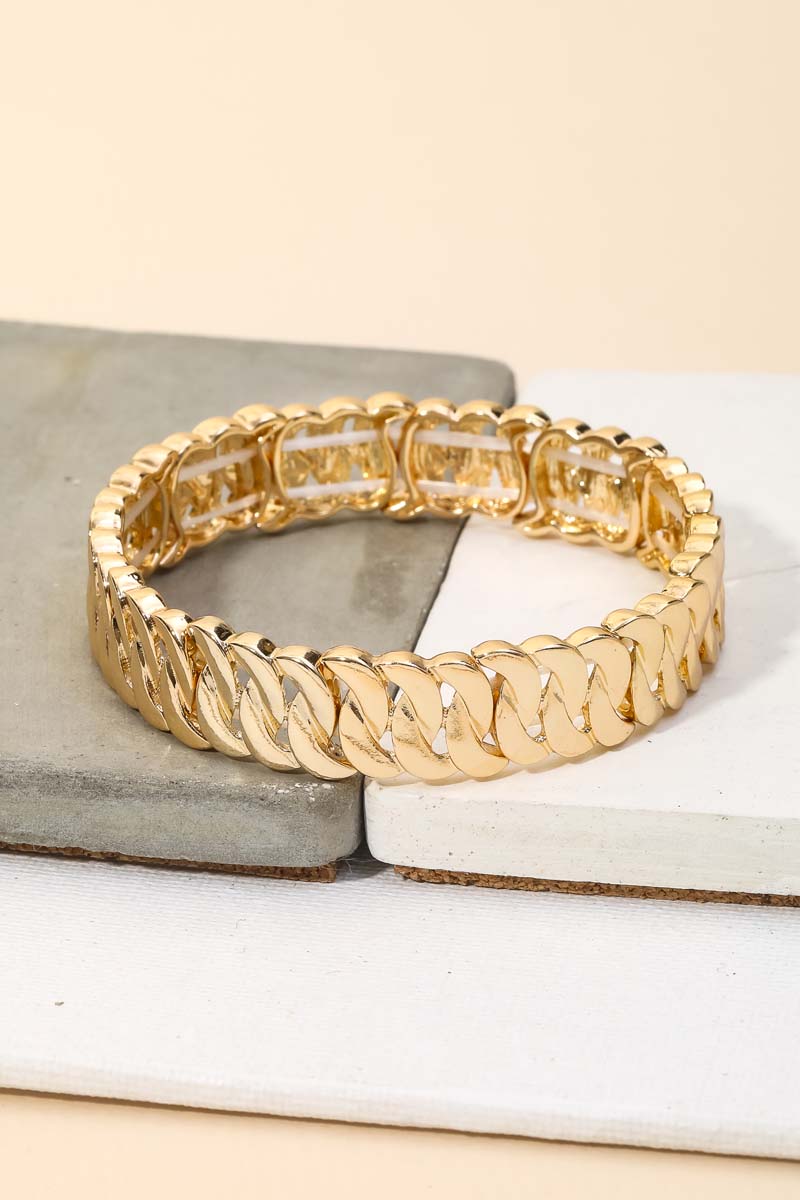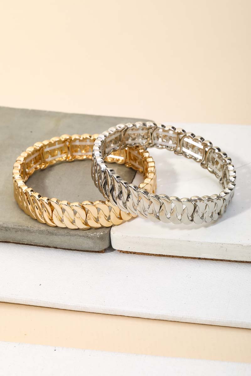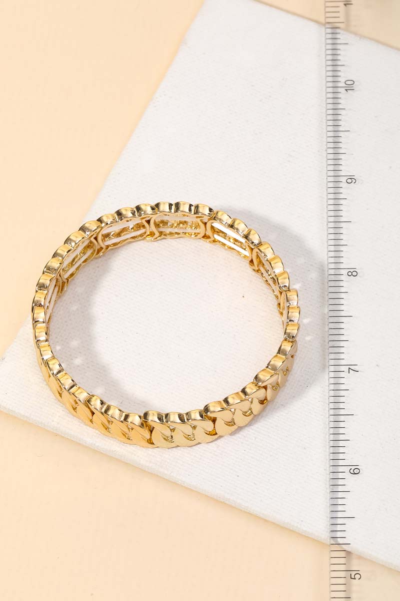 • The perfect way to add some sparkle to your outfit, this stretch bracelet exudes a refined chain texture link design. Add a touch of glamour to your wardrobe with this versatile stretch bracelet, perfect for enhancing the elegance of any look. Available in G and S. This item is sold in packs of 1.