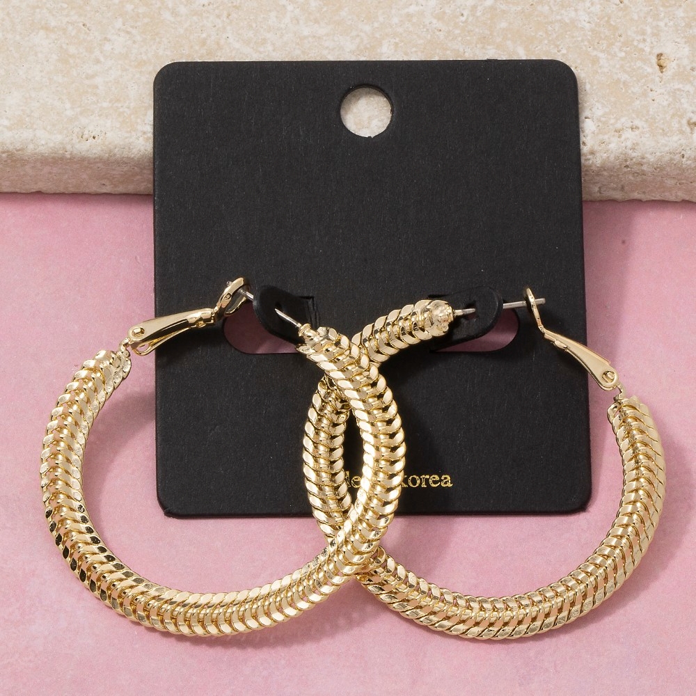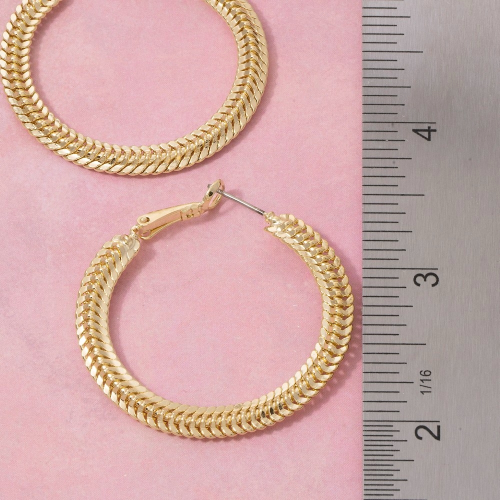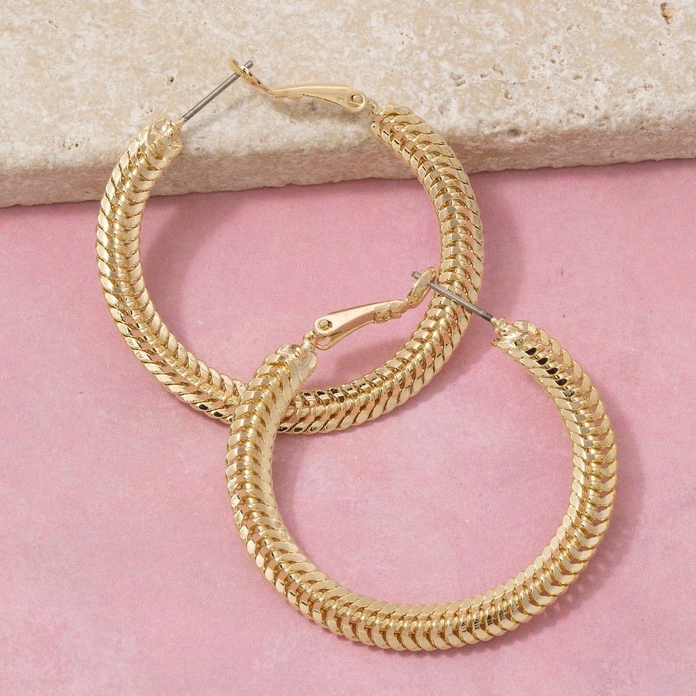 - A stunning piece that is sure to turn heads, this pair of hoop earrings radiates a sleek chunky braided rope large design. Infuse your ensemble with a touch of sophistication using this versatile pair of hoop earrings, a game-changer in the world of fashion. Available in G. This item is sold in packs of 1.