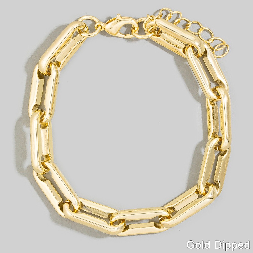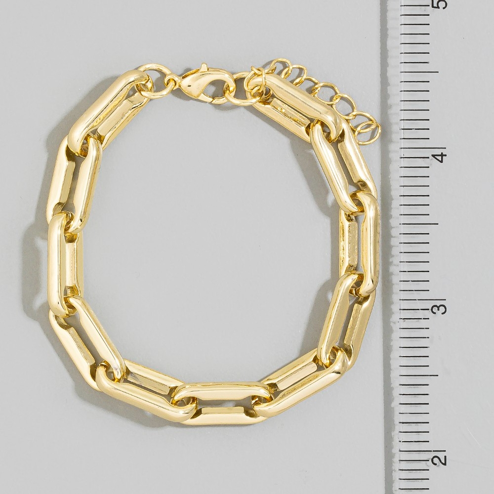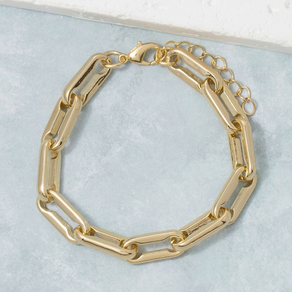 - The perfect way to showcase your unique style, this chain bracelet features a distinct chunky paperclip design. Achieve a perfect balance of style and sophistication with this versatile chain bracelet, the ultimate choice for the fashion-savvy individual. Available in GOLD. This item is sold in packs of 1.