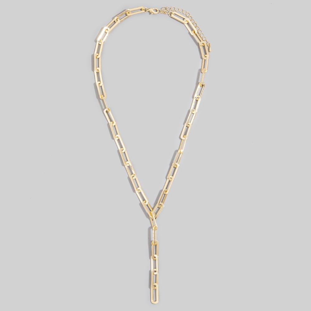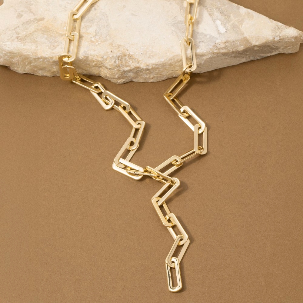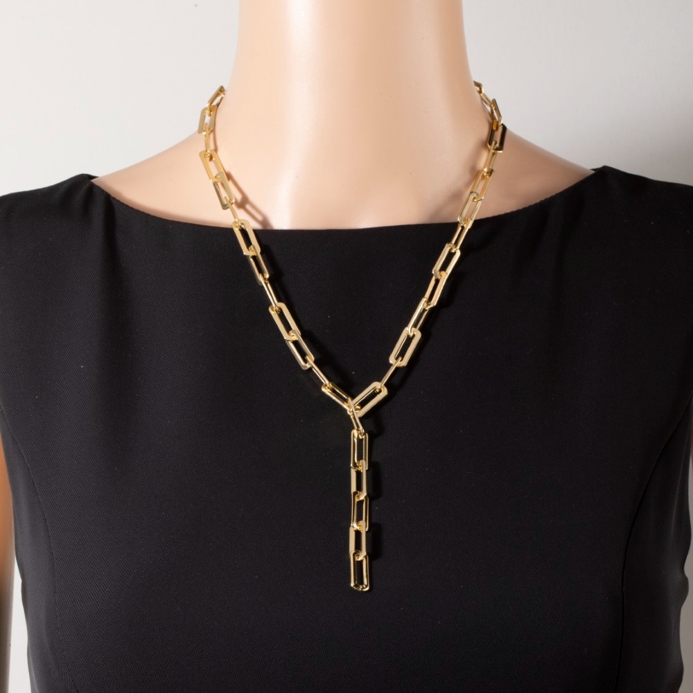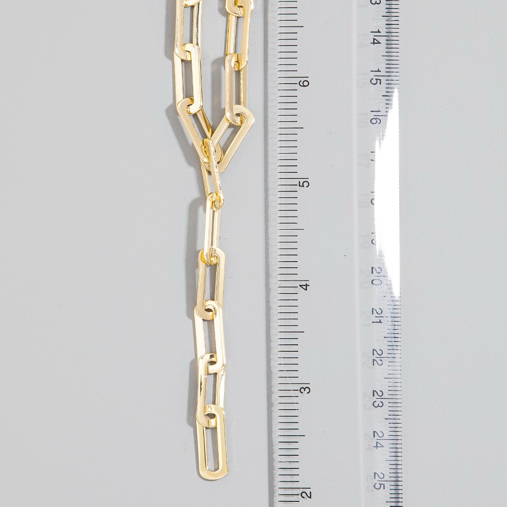 A classic design with a modern twist, this necklace brings a one-of-a-kind chunky paperclip chain y lariat design. Perfect for adding a touch of glamour and sophistication to any outfit, this necklace is a must-have. Available in G. This item is sold in packs of 1.