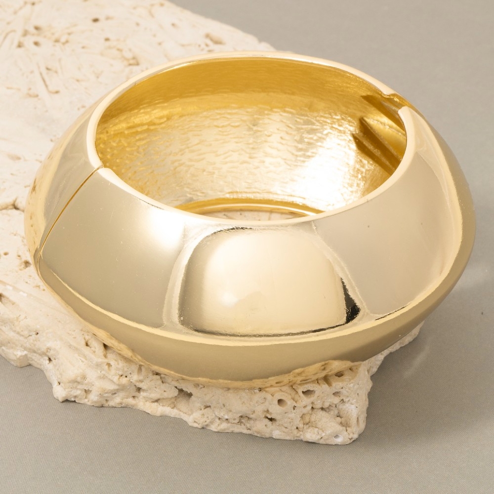 Uniquely designed and endlessly stylish, this bangle bracelet flaunts a luxurious chunky puffy dome hinged design. This item is ideal for those who want to add some personality to their outfits without being too bold. Available in GD. This item is sold in packs of 1.