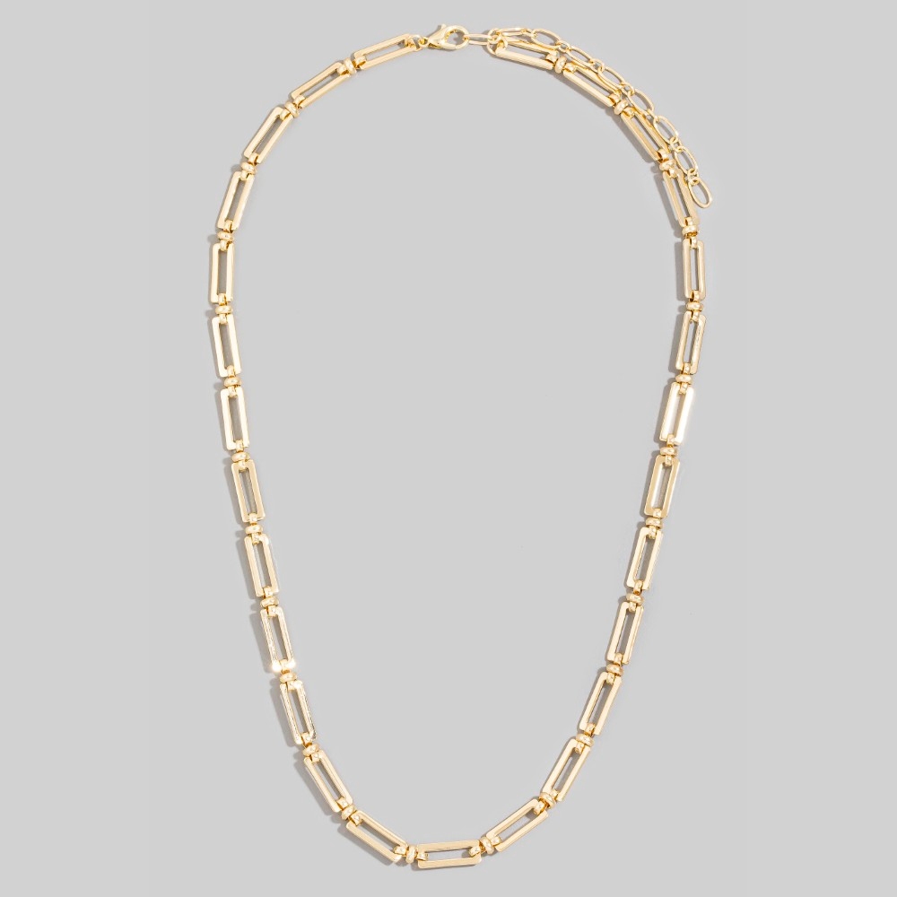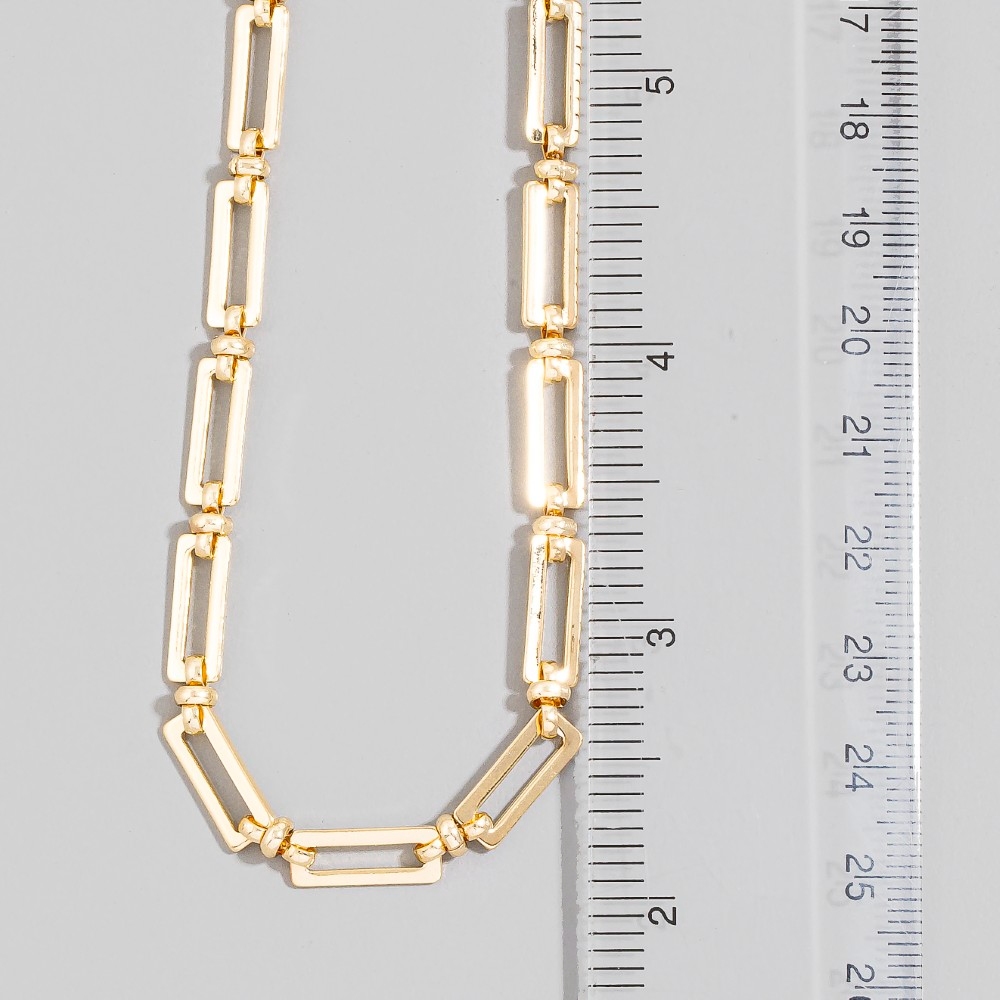 • Effortlessly stylish and always on-trend, this chain necklace boasts a magnificent chunky rectangular open link design. Unlock endless styling possibilities with this versatile chain necklace, creating a signature look that speaks volumes. Available in GD, RH. This item is sold in packs of 1.