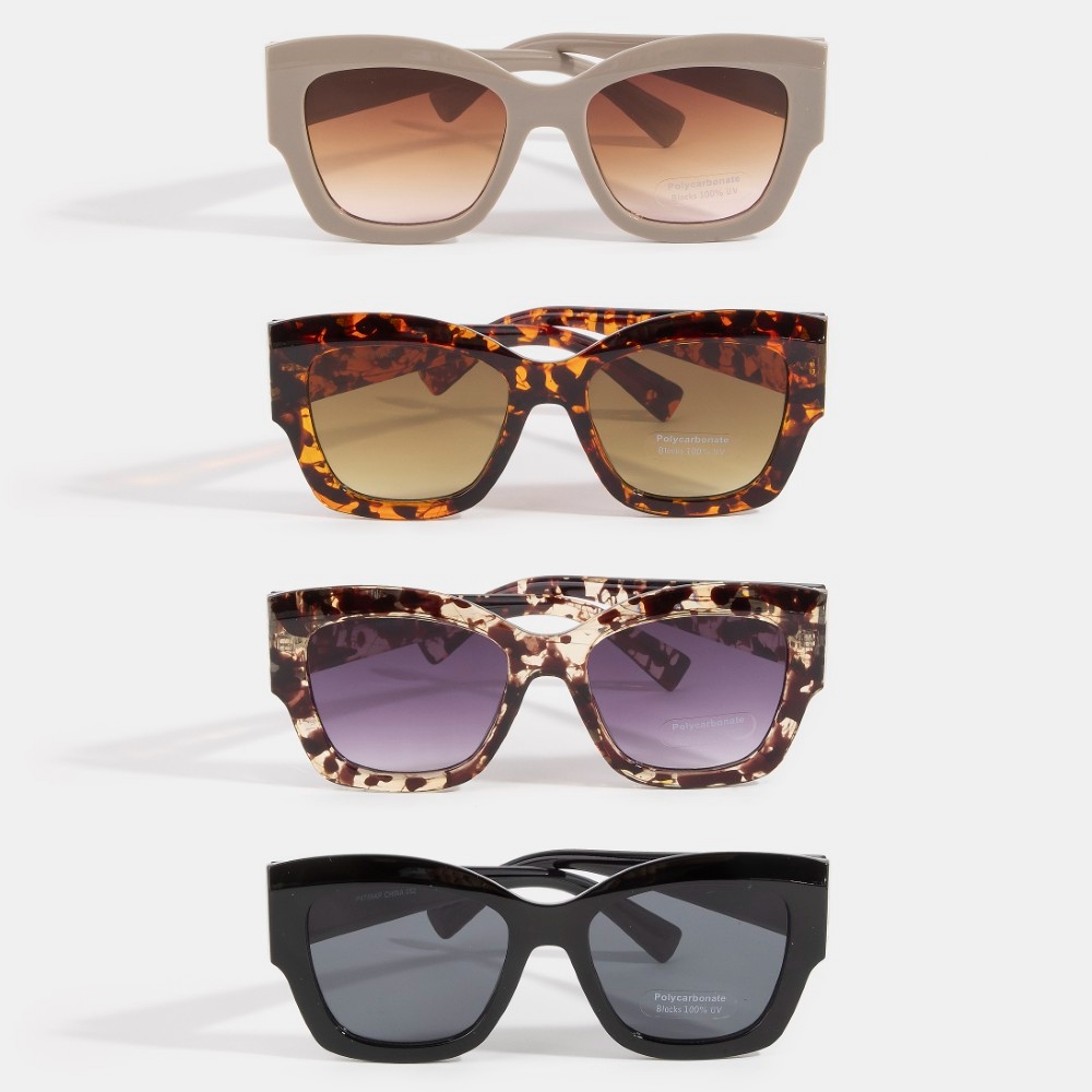 • Effortlessly elevate your outfit, this set of sunglasses flaunts a luxurious chunky square cat eye sunglasses with thick frame design. Redefine your wardrobe with this versatile set of sunglasses, a timeless addition that brings an air of sophistication to any look. This item is sold in packs of 12.