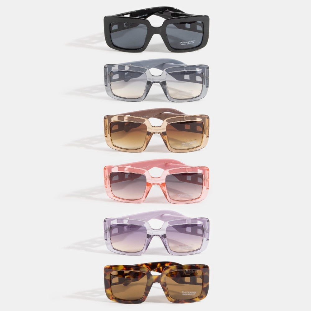 Make a statement, this set of sunglasses possesses a fine chunky square frame sunglasses design. Embrace fashion flexibility with this versatile set of sunglasses, designed to effortlessly enhance the sophistication of any outfit. Available in ASSORTED. This item is sold in packs of 12.