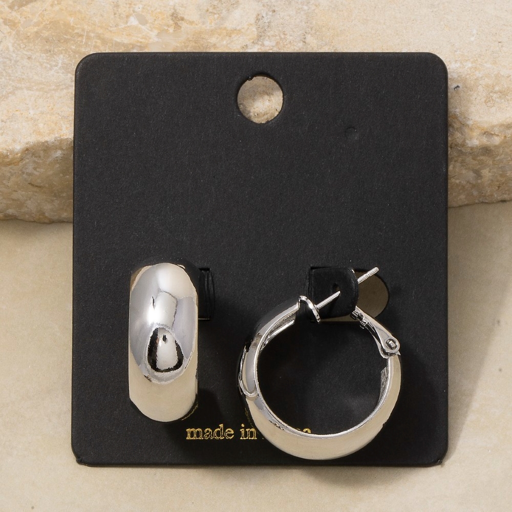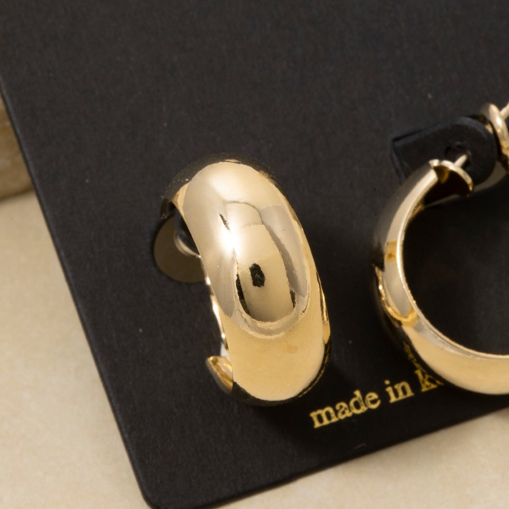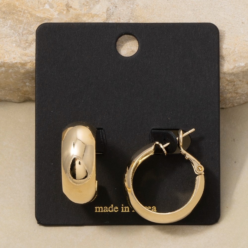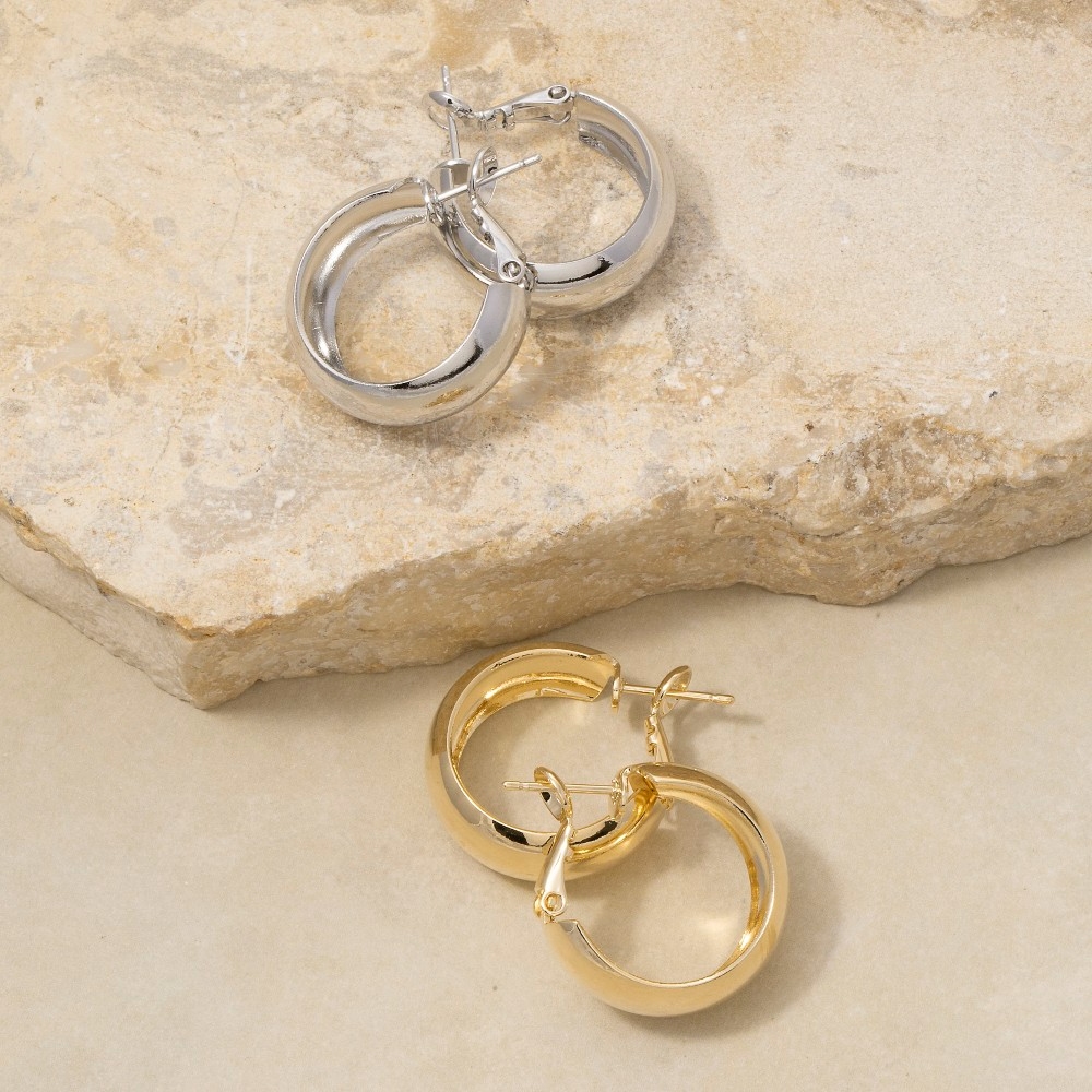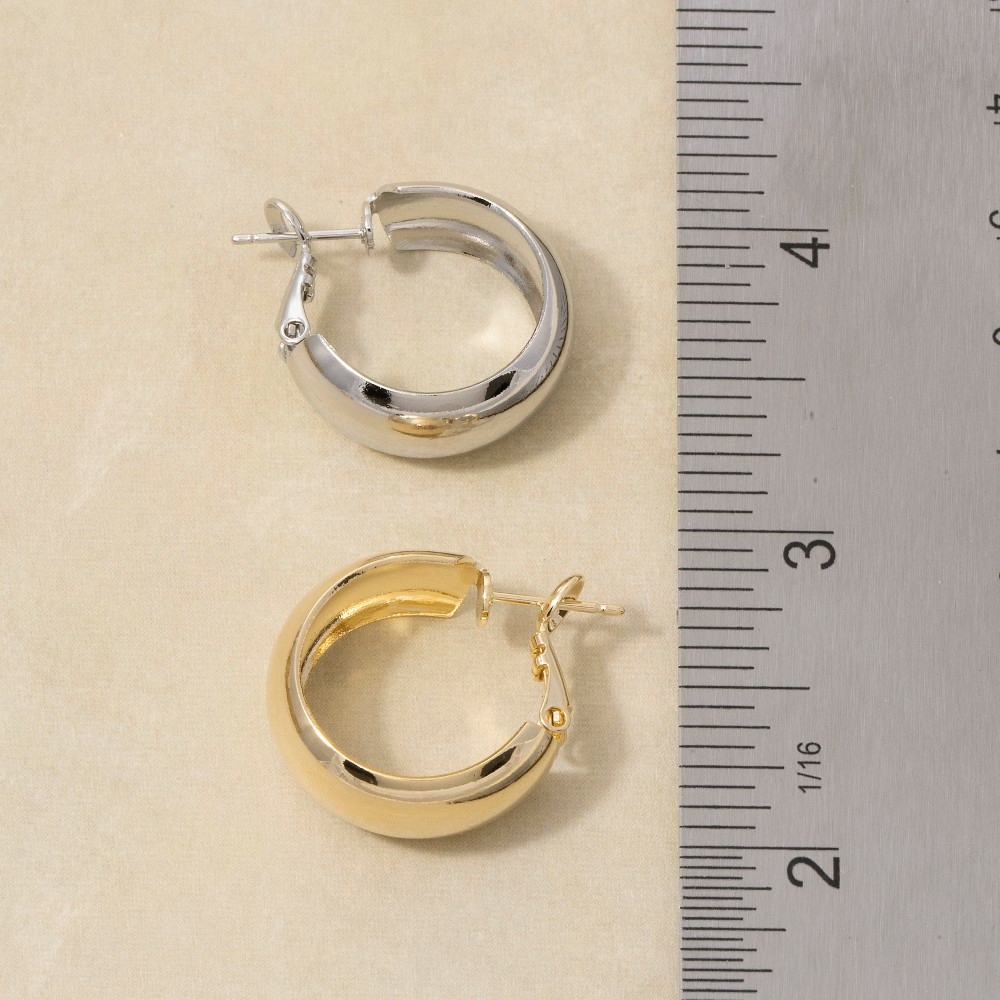 This piece is both timeless and contemporary, this pair of hoop earrings comes with a special chunky wide dome huggie design. Transform your outfit into a fashion masterpiece with this versatile pair of hoop earrings, an essential for the style-conscious individual. Available in G and S. This item is sold in packs of 1.