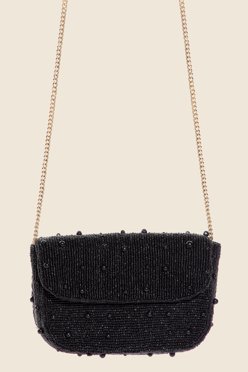 This piece is a true showstopper, this hand bag adds a distinctive cluster seed beaded chain strap design. This hand bag is a great way to add some flair to your outfit without going over the top. Available in BLACK and IVORY. This item is sold in packs of 1.