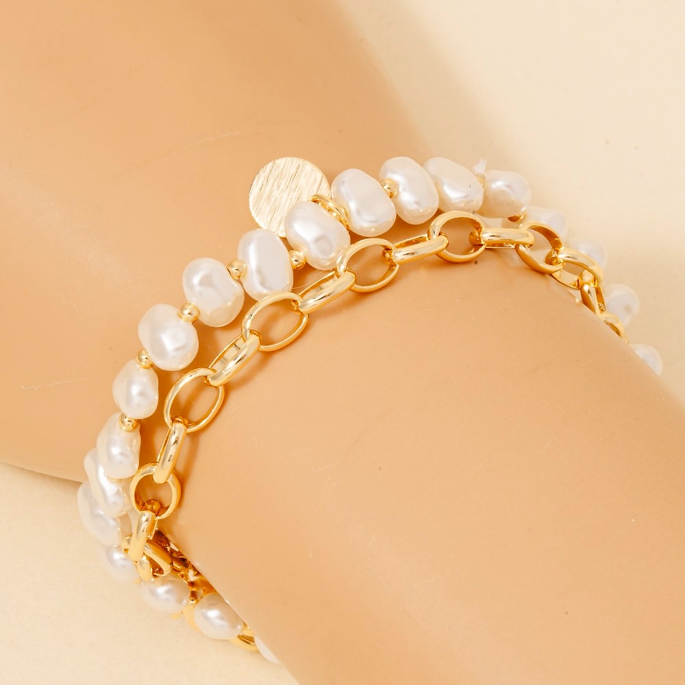 - Perfectly versatile and endlessly stylish, this bracelet introduces an exceptional coin charm pearl beads and chain layered design. This item is the perfect finishing touch to any outfit, adding a touch of glamour and sophistication. This item is sold in packs of 12.