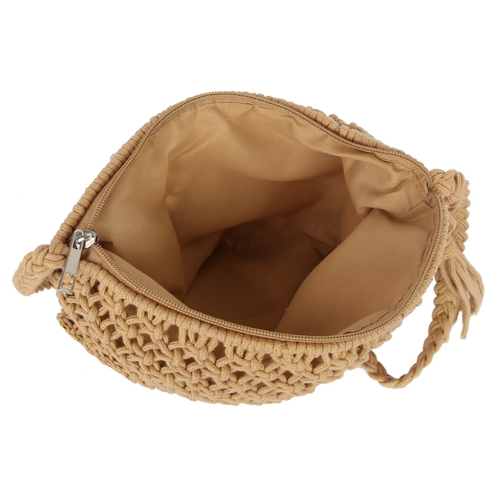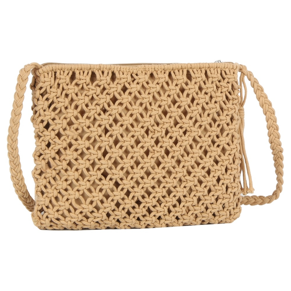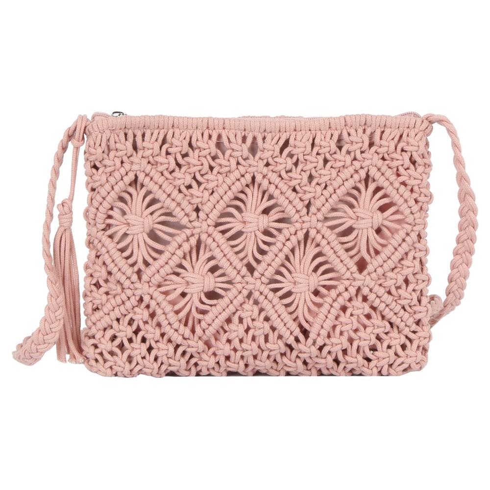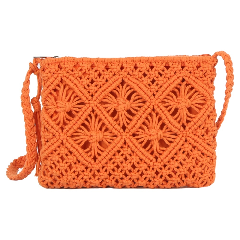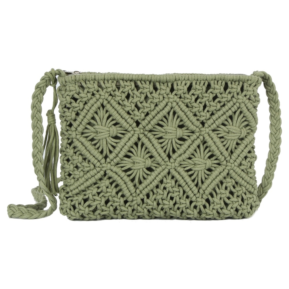 Perfect for any occasion, this crossbody bag exudes a refined crocheted woven macrame design. Elevate your personal style effortlessly with this versatile crossbody bag, an essential component for a refined wardrobe. Available in BG, BK, BR, BS, CF, OLV, OR, ST. This item is sold in packs of 1.