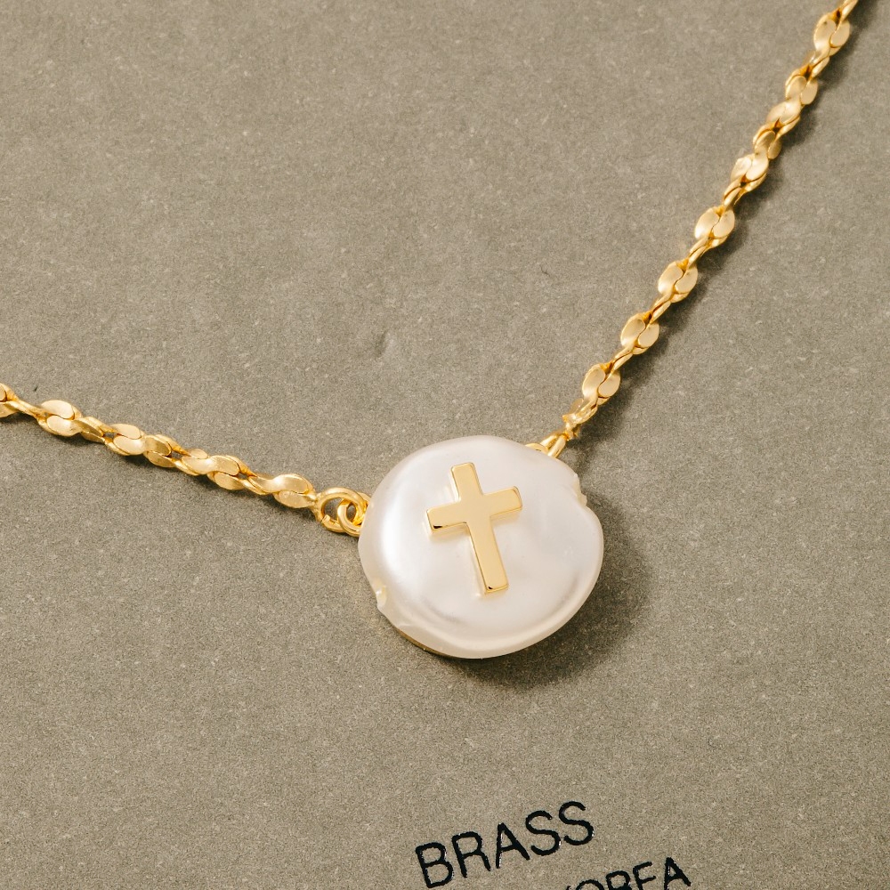 - Bold and daring, this chain necklace carries a charming cross on pearl pendant design. Add a touch of glamour to your wardrobe with this versatile chain necklace, perfect for enhancing the elegance of any look. Available in GDCRM. This item is sold in packs of 1.