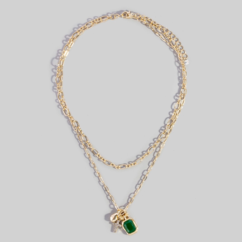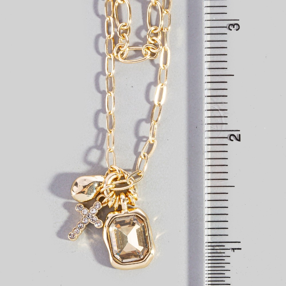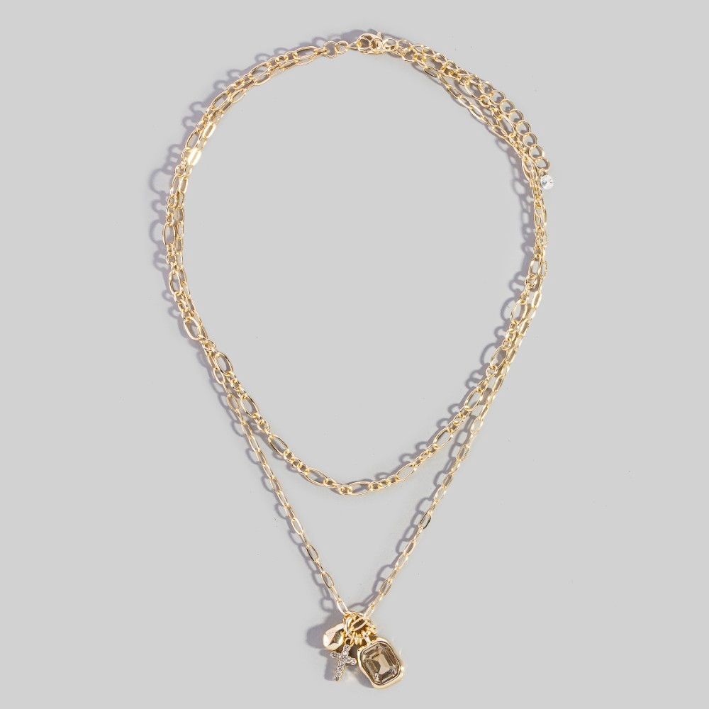 • Sleek, modern, and always stylish, this chain necklace incorporates a flawless crystal & cross charm double layer link design. This item is ideal for those who want to add some personality to their outfits without being too bold. Available in GEMR and G. This item is sold in packs of 1.