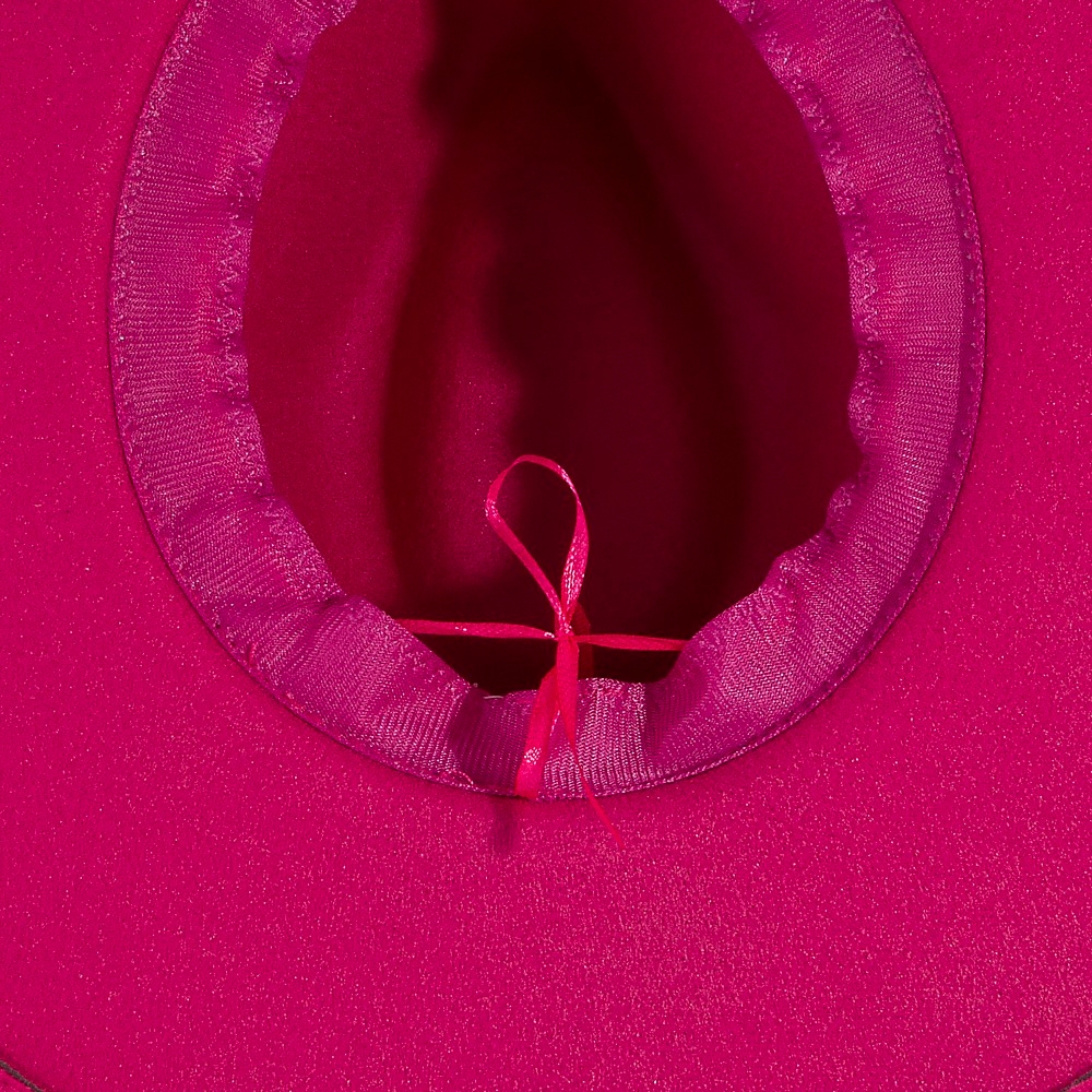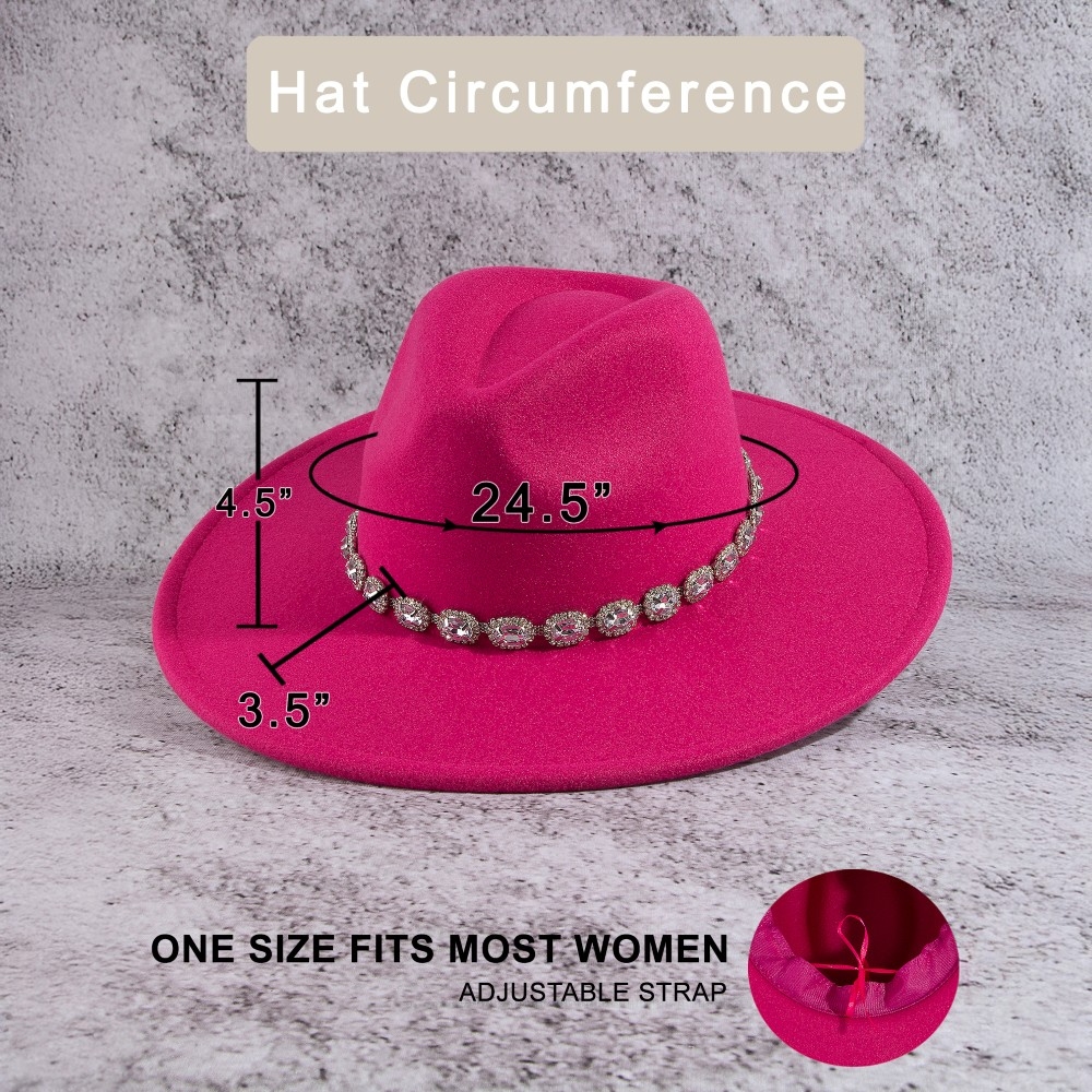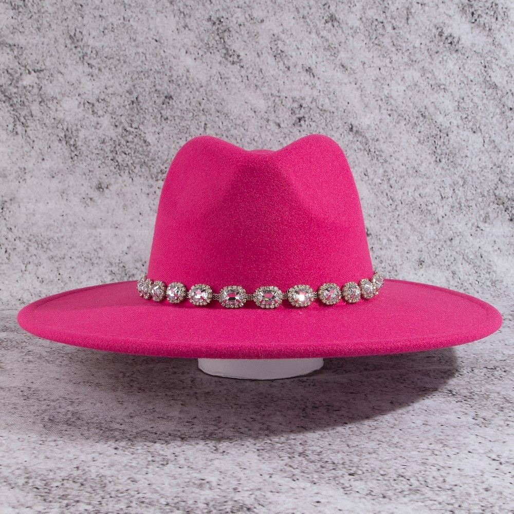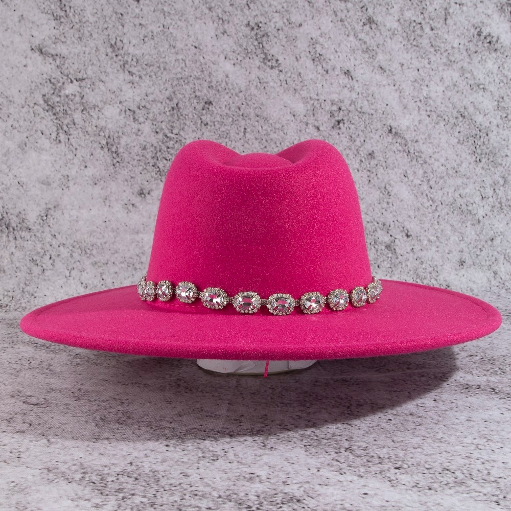 Upgrade your fedora hat game, this fedora hat adds a distinctive crystal rhinestone strap design. This item adds the perfect finishing touch to any outfit, making it stand out from the crowd. Available in BE, BK, FU, BL, OR and PK. This item is sold in packs of 1.