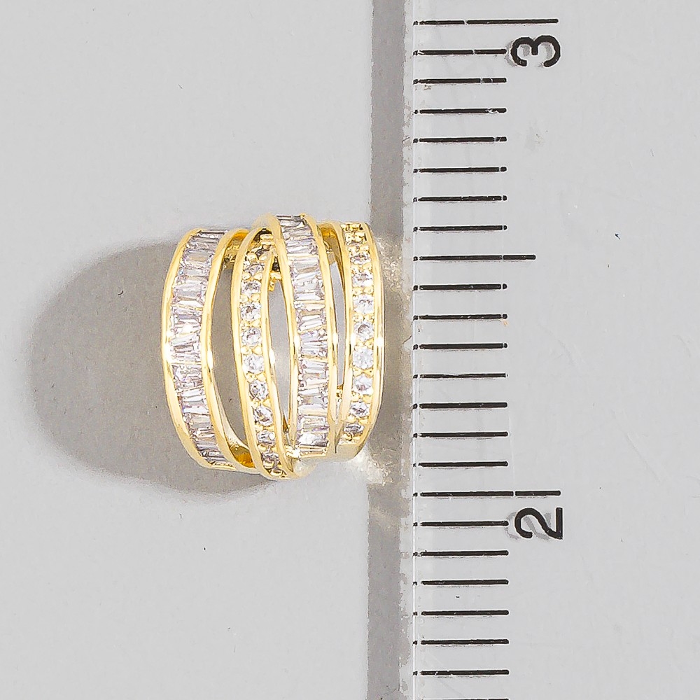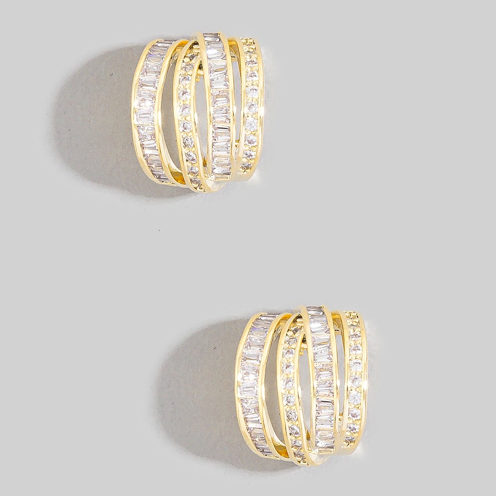 A versatile and stylish addition to any wardrobe, this pair of earrings emanates an elegant cz baguette triple row huggie design. This item is perfect for anyone who loves to accessorize and add some personality to their outfits. Available in G, RH. This item is sold in packs of 1.