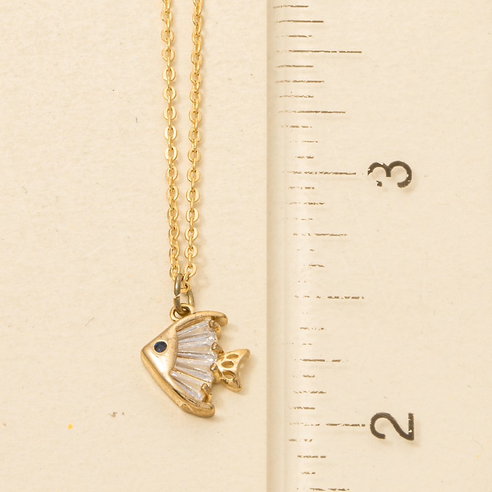Add some edge to your look, this necklace reveals an intricate cz fish pendant design. Add a touch of glamour to your wardrobe with this versatile necklace, perfect for enhancing the elegance of any look. Available in G. This item is sold in packs of 1.
