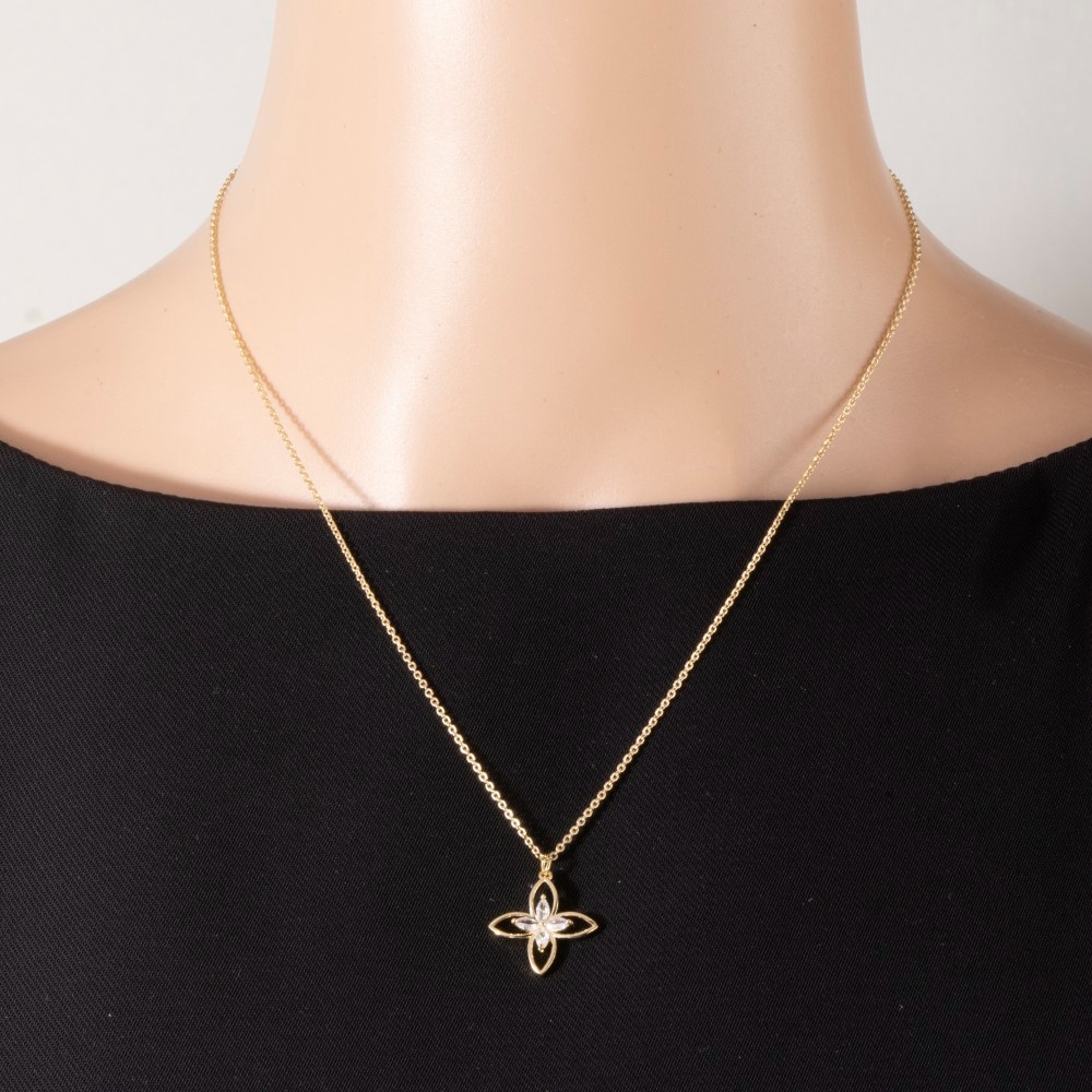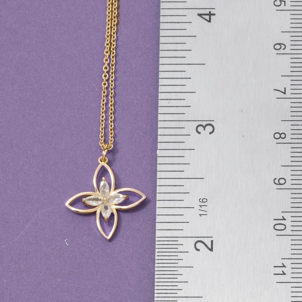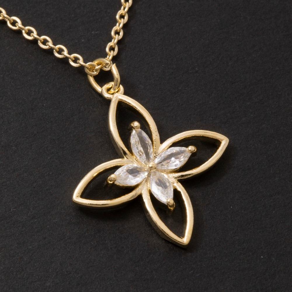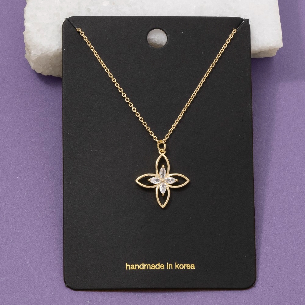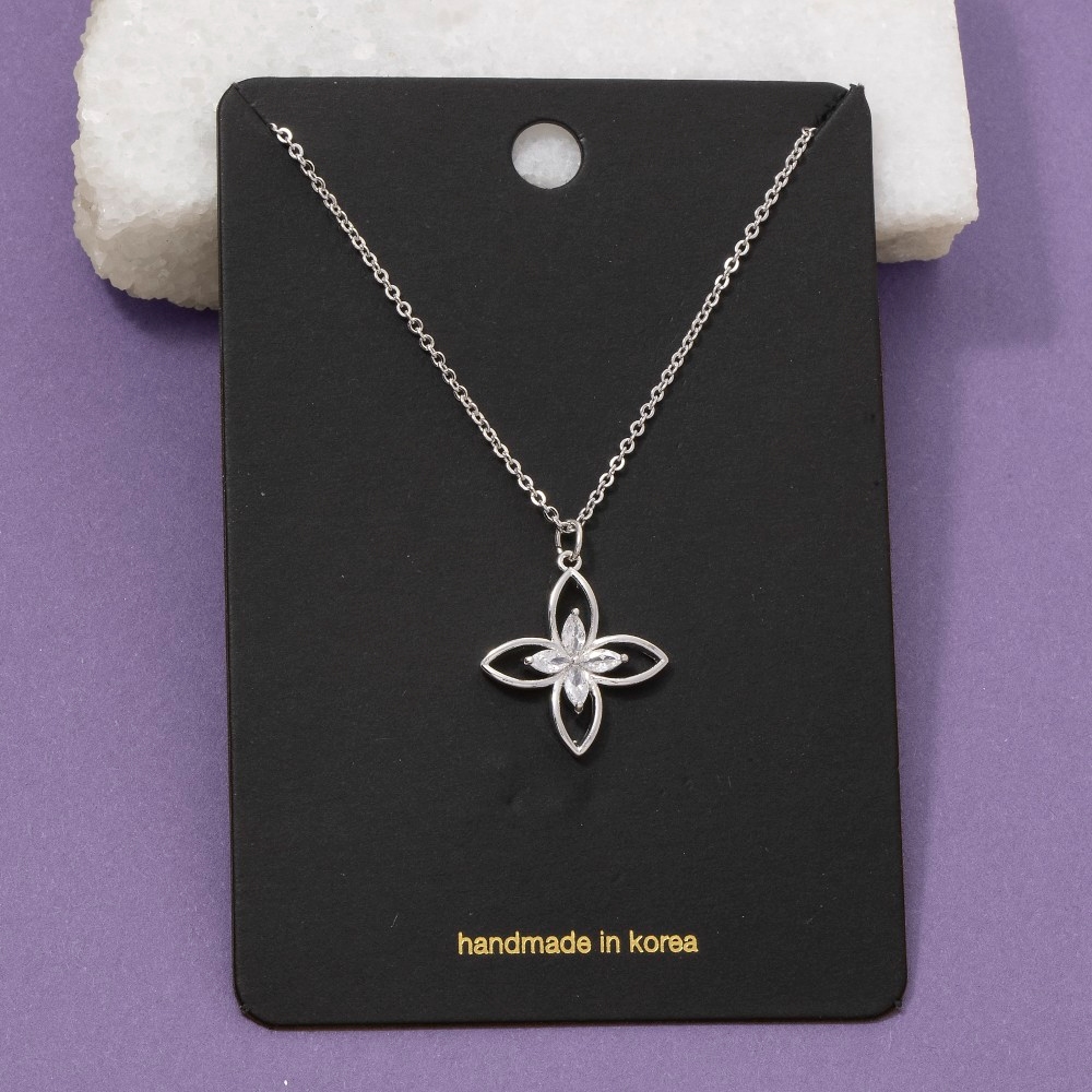 - Effortlessly stylish and always on-trend, this pendant necklace brings a one-of-a-kind cz four petal flower design. A must-have pendant necklace for anyone who loves to add some flair to their outfits. Available in G and S. This item is sold in packs of 1.