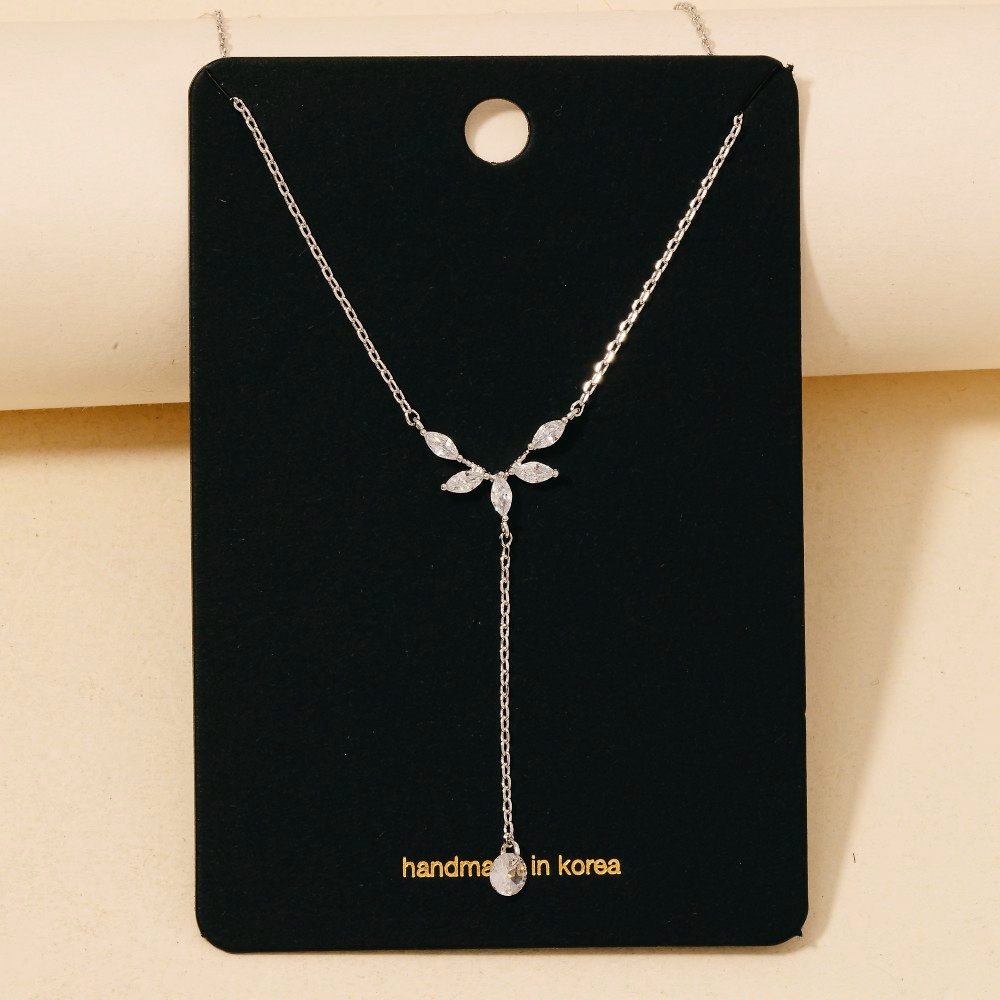 Elevate any look, this chain necklace showcases a breathtaking cz leaf gems lariat y design. Transform your outfit from ordinary to extraordinary with the touch of elegance provided by this versatile chain necklace. Available in G, S. This item is sold in packs of 1.