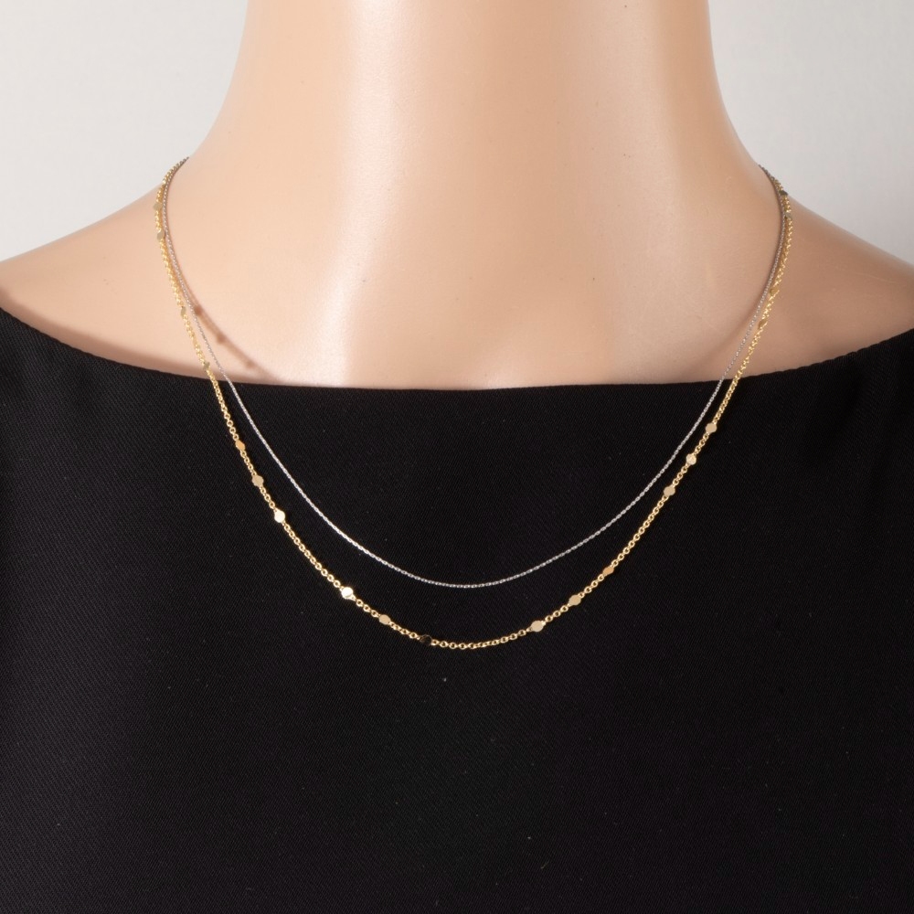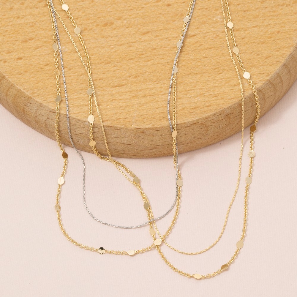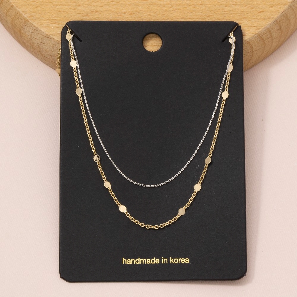 A versatile and stylish addition to any wardrobe, this layered necklace emanates an elegant dainty disc station design. Infuse elegance into your daily wardrobe with the versatile charm of this must-have layered necklace. Available in G, TT. This item is sold in packs of 1.