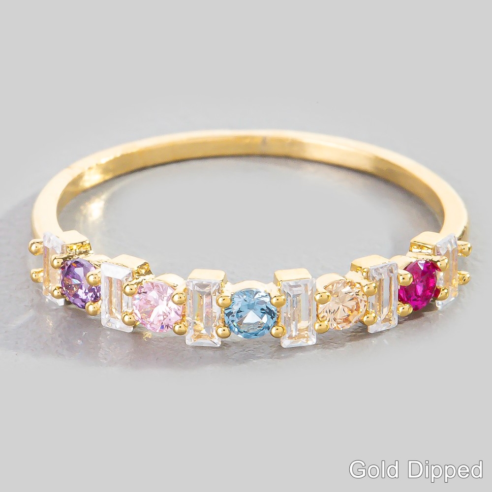 Stay on-trend and stand out from the crowd, this ring possesses a fine dainty multi-cut cubic zirconia design. Experience the transformative power of this versatile ring, effortlessly enhancing the overall aesthetic of your outfit. Available in G. This item is sold in packs of 1.