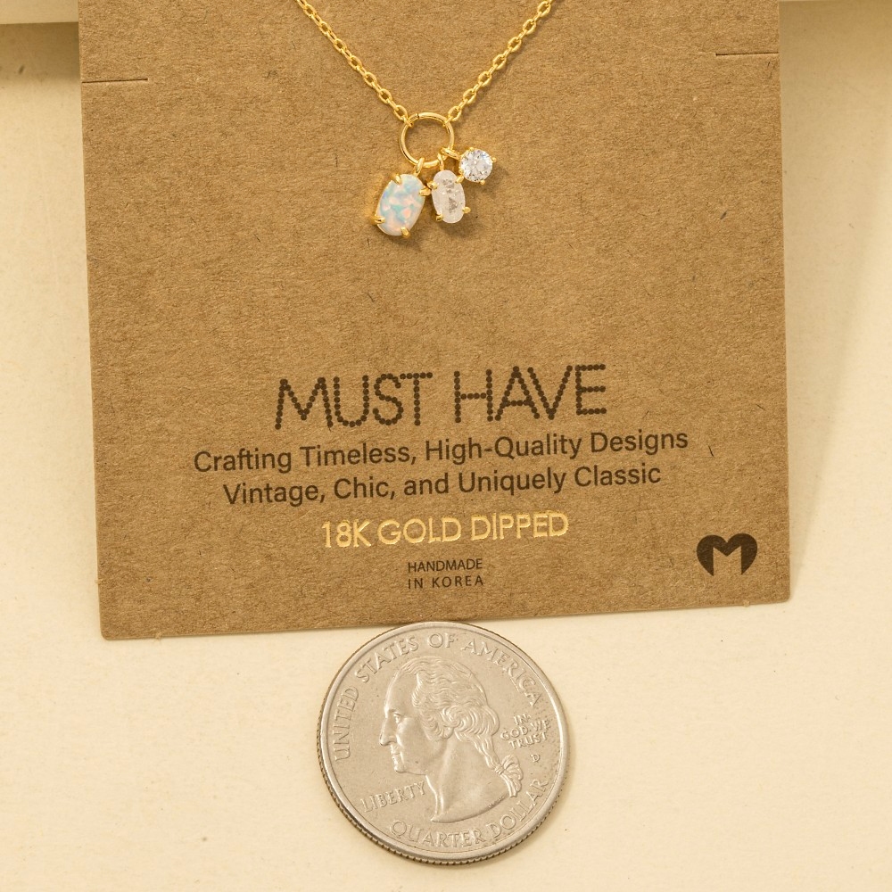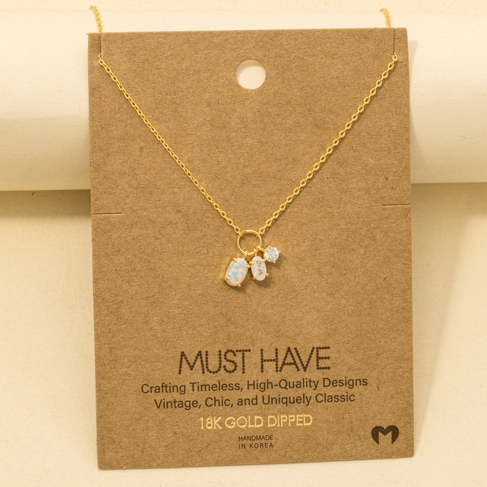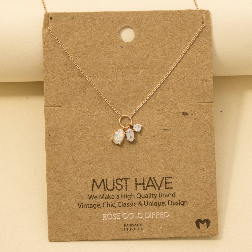 - The epitome of sophistication and style, this trending necklace reveals an intricate dainty opal crystal charm necklace design. Embrace fashion flexibility with this versatile trending necklace, designed to effortlessly enhance the sophistication of any outfit. Available in G, R, S. This item is sold in packs of 1.