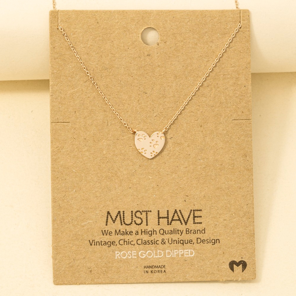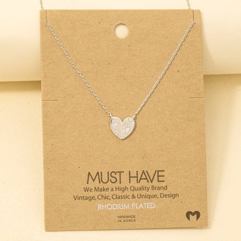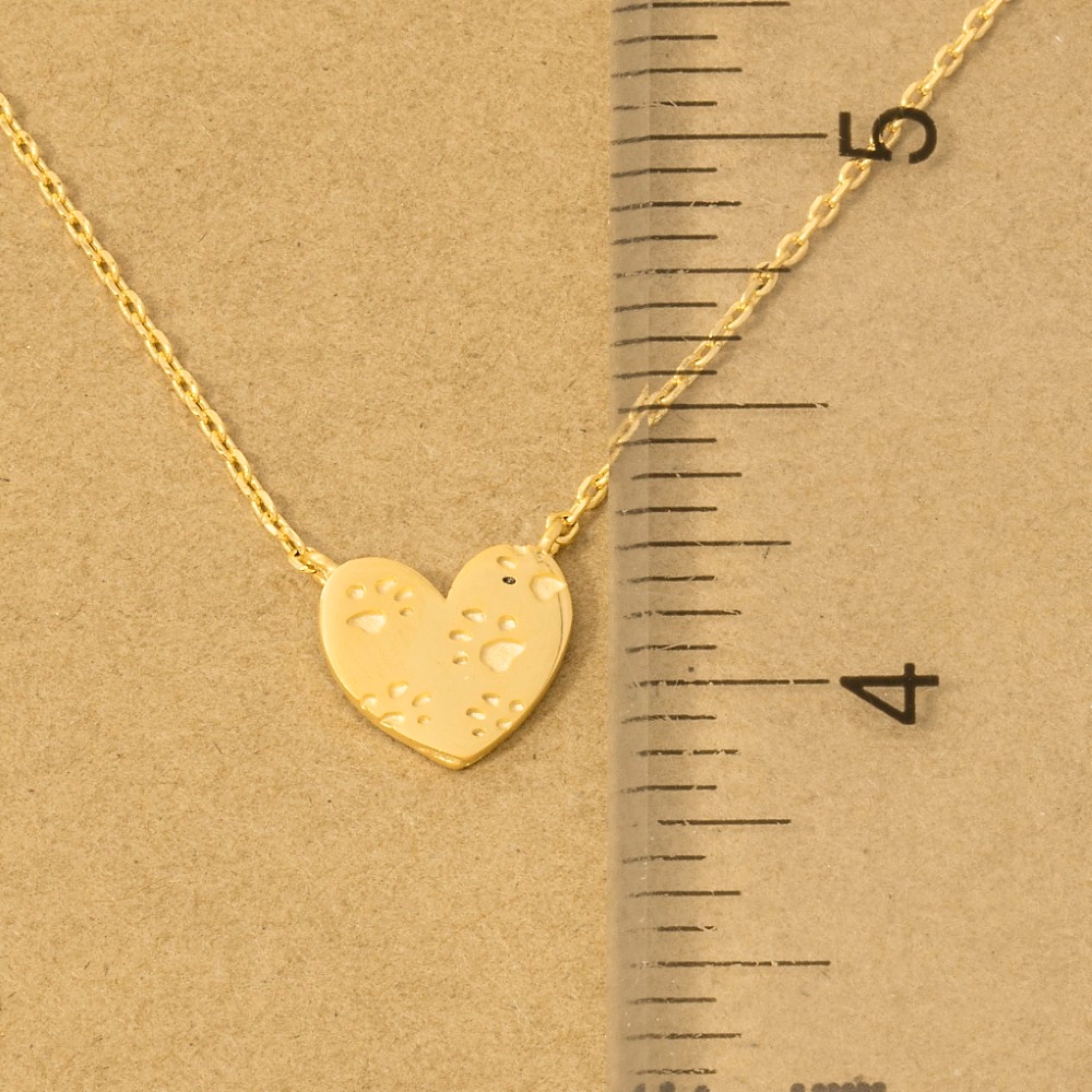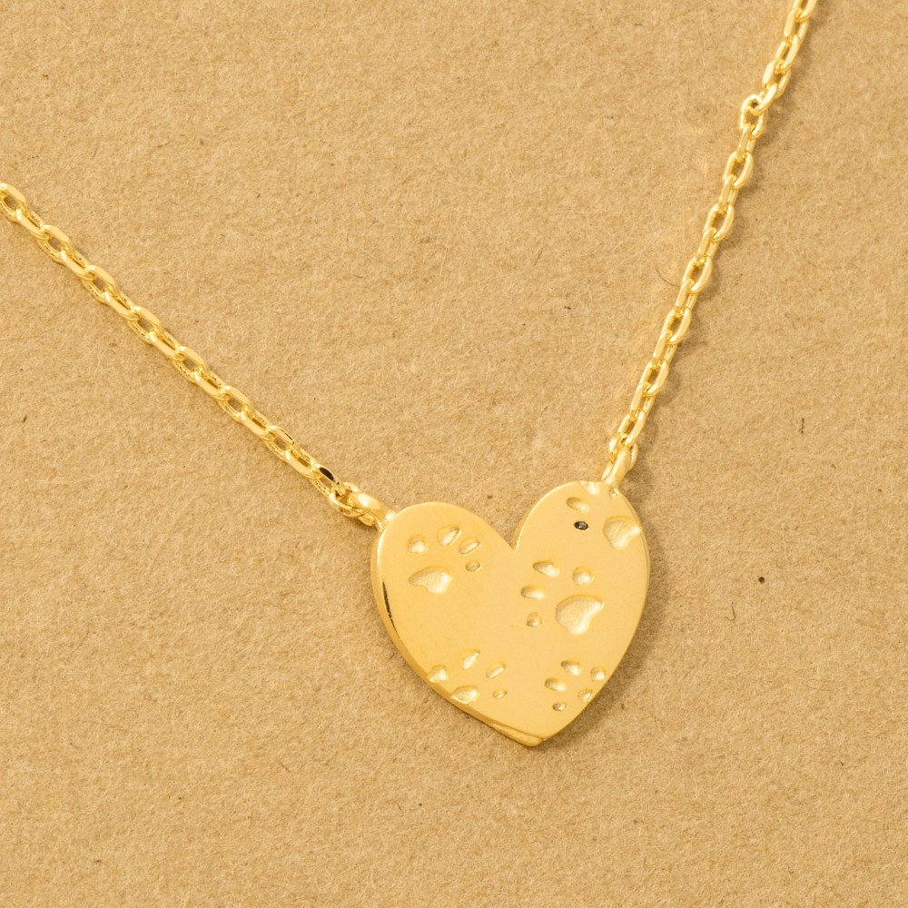 A unique and stylish piece that sets you apart, this trending necklace radiates a sleek dog paw heart pendant necklace design. Perfect for adding a touch of glamour and sophistication to any outfit, this trending necklace is a must-have. Available in G, R, S. This item is sold in packs of 1.