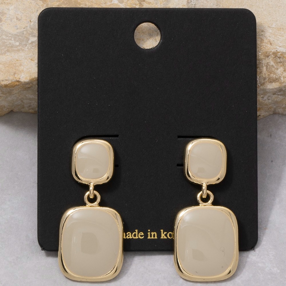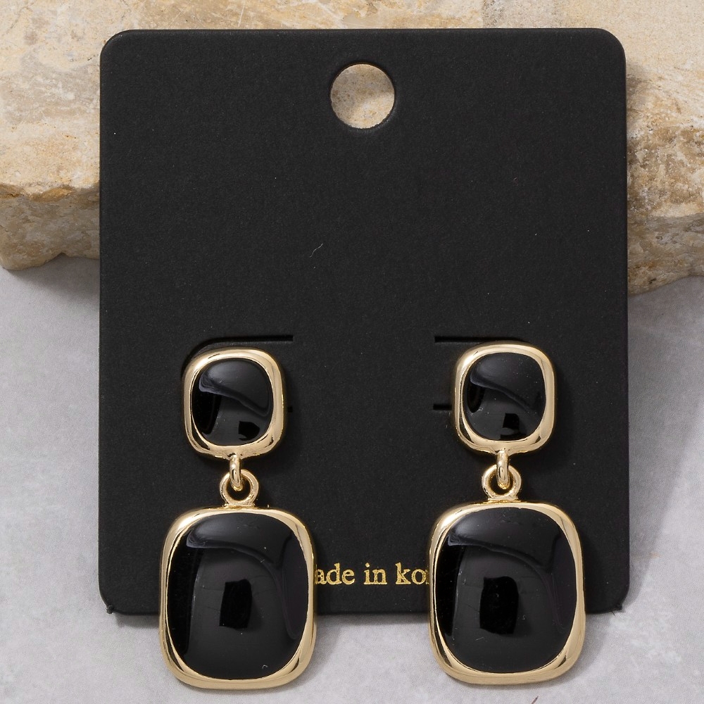 A classic design with a modern twist, this pair of drop earrings includes a stunning double cushion colored stone design. Perfect for any occasion, this versatile pair of drop earrings will enhance any outfit you wear. This item is sold in packs of 12.