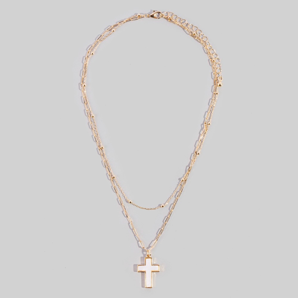 • Make a bold statement, this pendant necklace shows off a distinctive double layered chain cross design. Perfect for dressing up your favorite outfit, this pendant necklace is a must-have. Available in GDCM. This item is sold in packs of 1.