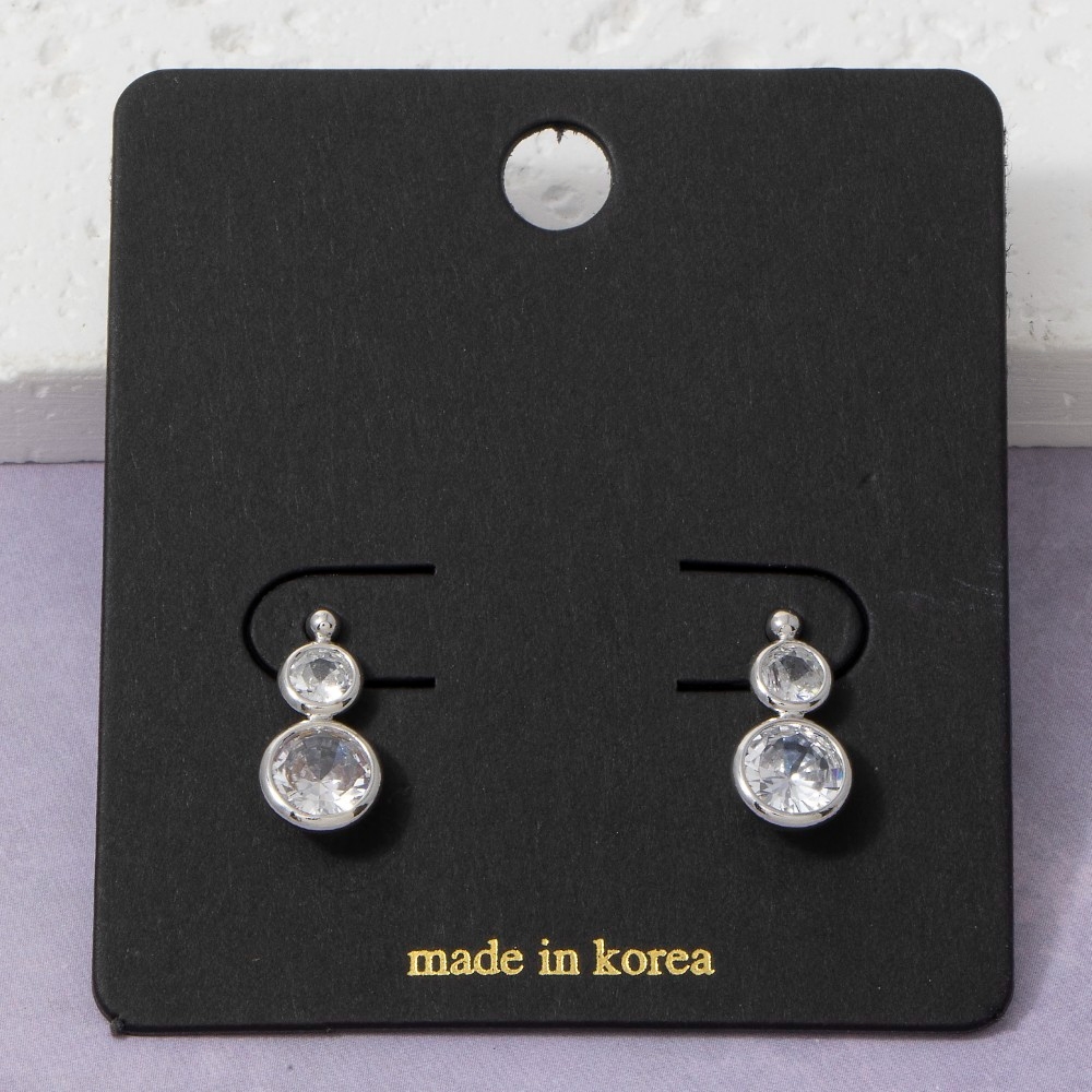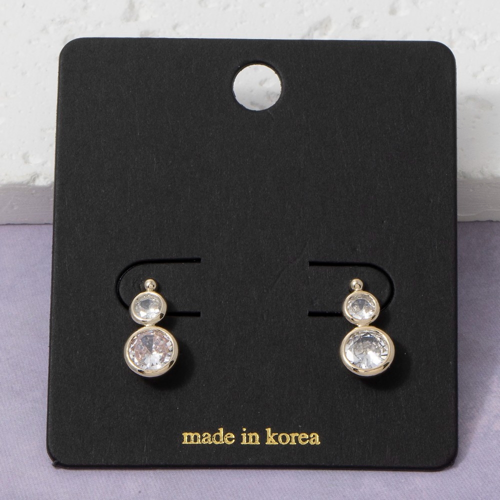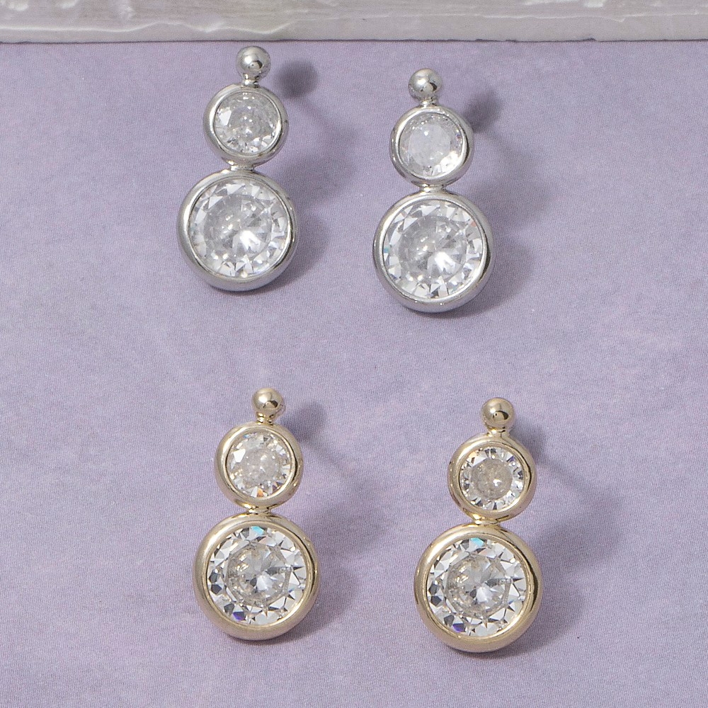 The perfect way to complete any outfit, this pair of drop earrings contains a special double round bezel cubic zirconia design. Upgrade your fashion game with this versatile pair of drop earrings, a timeless addition that complements any outfit seamlessly. Available in G, S. This item is sold in packs of 1.