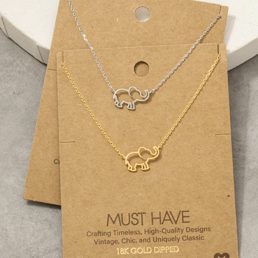 This season's must-have trending necklace, this trending necklace includes a stunning elephant cutout pendant necklace design. Unlock endless styling possibilities with this versatile trending necklace, creating a signature look that speaks volumes. Available in G, R, S. This item is sold in packs of 1.