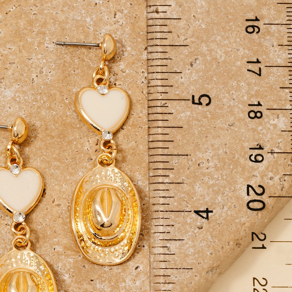 A stunning piece that is sure to turn heads, this pair of dangle earrings showcases a breathtaking enamel heart and cowboy hat design. Elevate your fashion ensemble effortlessly with this versatile pair of dangle earrings, a stylish choice for the modern trendsetter. Available in GDIVY. This item is sold in packs of 1.