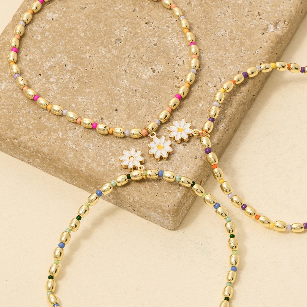 - A classic design with a contemporary twist, this bracelet embodies a sophisticated epoxy flower charm stainless steel beaded design. Elevate your personal style effortlessly with this versatile bracelet, an essential component for a refined wardrobe. Available in BL, MU, PK. This item is sold in packs of 1.