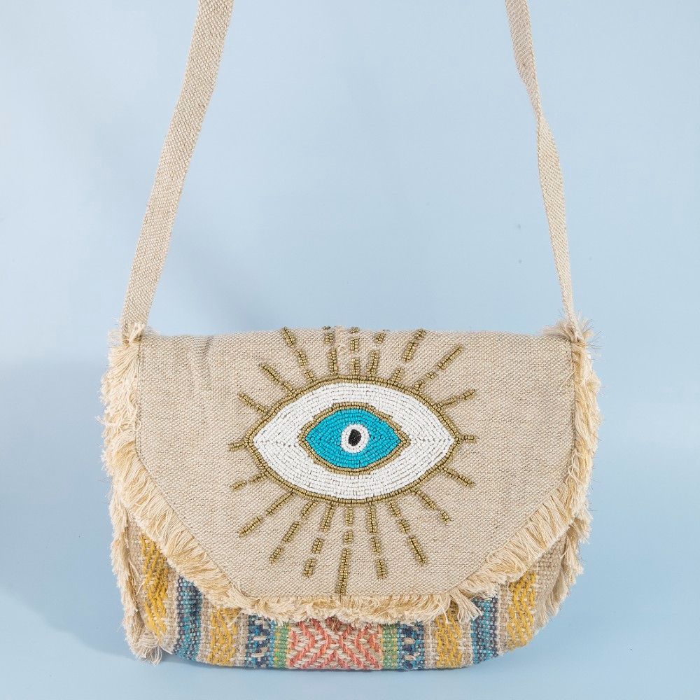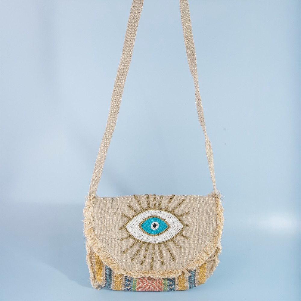 This piece is both timeless and contemporary, this crossbody bag presents a striking evil eye beaded design. Experience the transformative power of this versatile crossbody bag, effortlessly enhancing the overall aesthetic of your outfit. This item is sold in packs of 1.