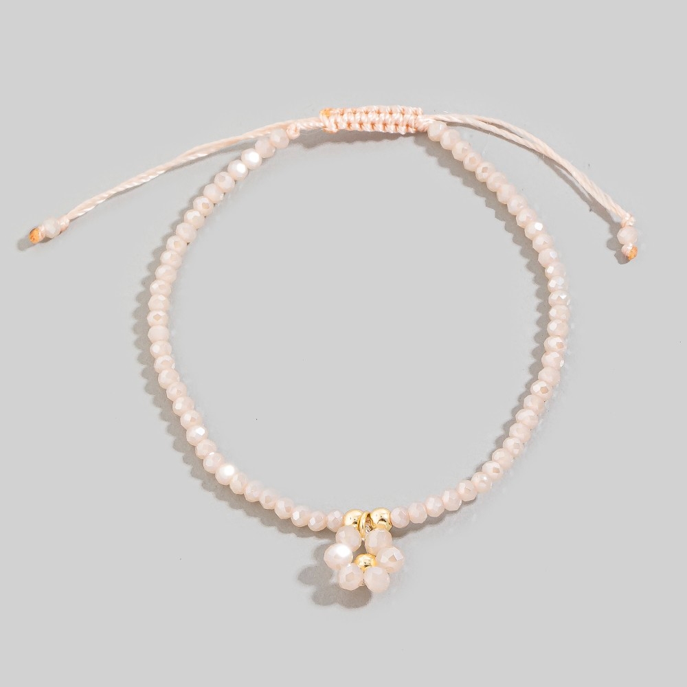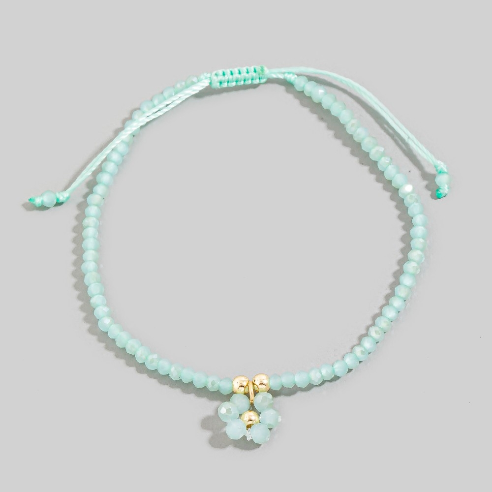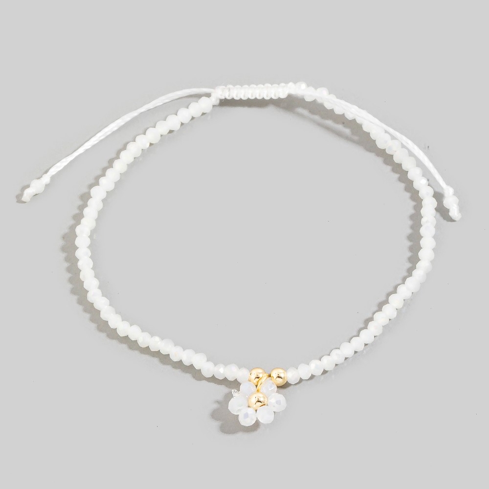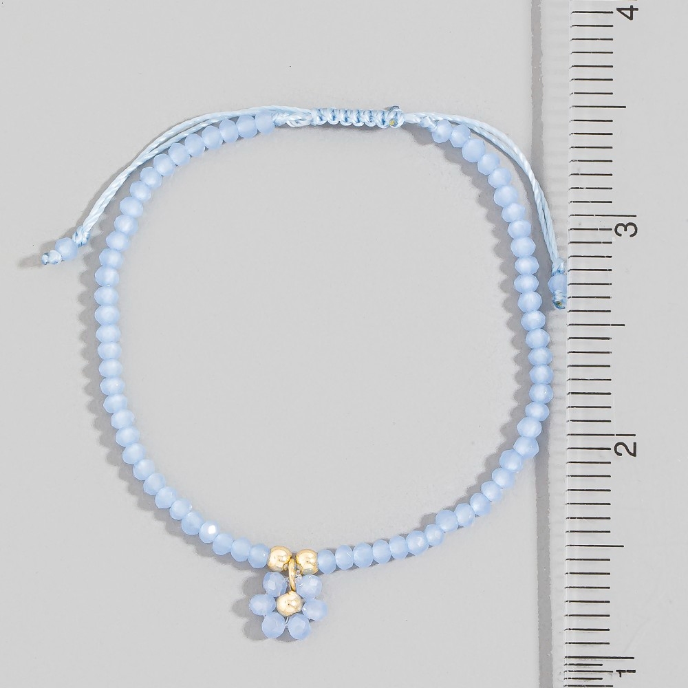 Perfect for any occasion, from casual to formal, this bracelet incorporates a remarkable faceted beaded flower charm adjustable cord design. Perfect for dressing up or down, this versatile bracelet adds a touch of sophistication to any look. Available in GDBB, GDMNT, GDPK, GDWH. This item is sold in packs of 1.
