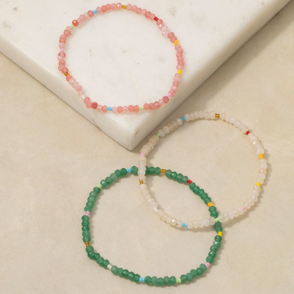 • A versatile piece that can be dressed up or down, this stretch bracelet reveals an intricate faceted gemstone bead design. Add a touch of glamour to your wardrobe with this versatile stretch bracelet, perfect for enhancing the elegance of any look. Available in GN, PK, WH. This item is sold in packs of 1.