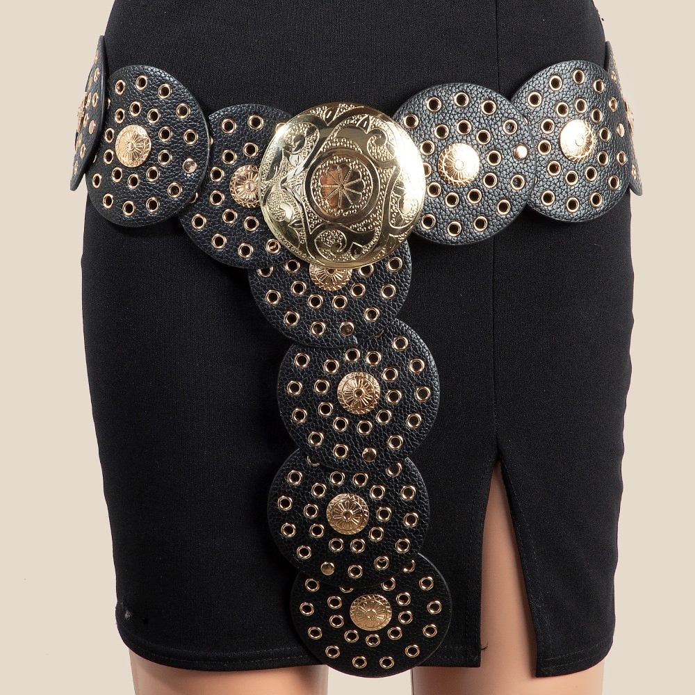 • Upgrade your chain belt game, this chain belt brings a one-of-a-kind faux leather grommet disc design. Discover the magic of accessorizing with this versatile chain belt, effortlessly upgrading the style quotient of any outfit. Available in BG, BR, BS, BZG, BZS, G, S, W. This item is sold in packs of 1.
