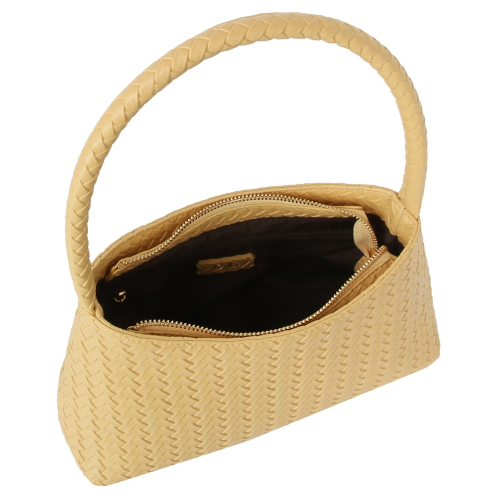 Perfect for any fashion-forward individual, this shoulder bag features an exceptional faux leather woven design. Redefine your wardrobe with this versatile shoulder bag, a timeless addition that brings an air of sophistication to any look. Available in AMBER, BF, CF, DBL, IV, LST, OLV. This item is sold in packs of 1.