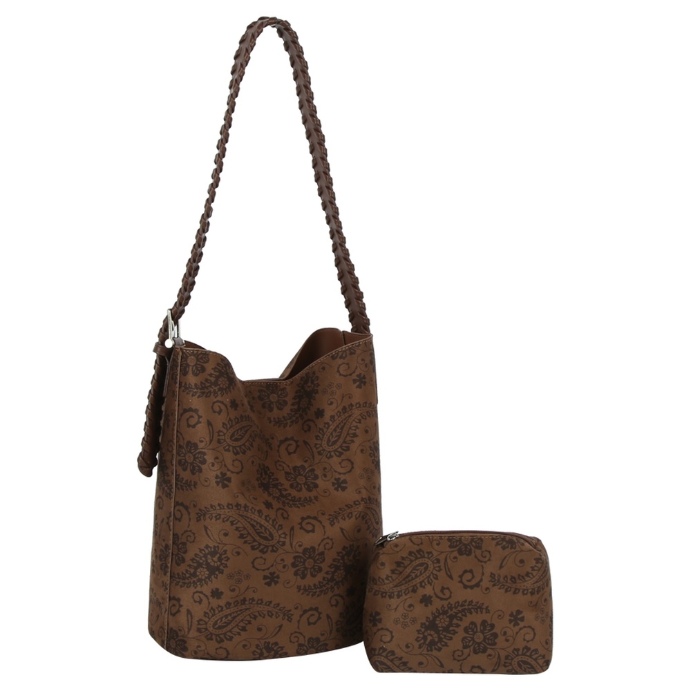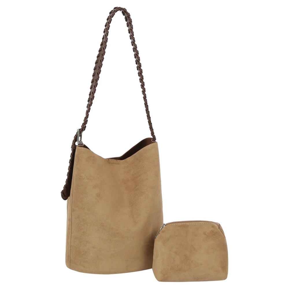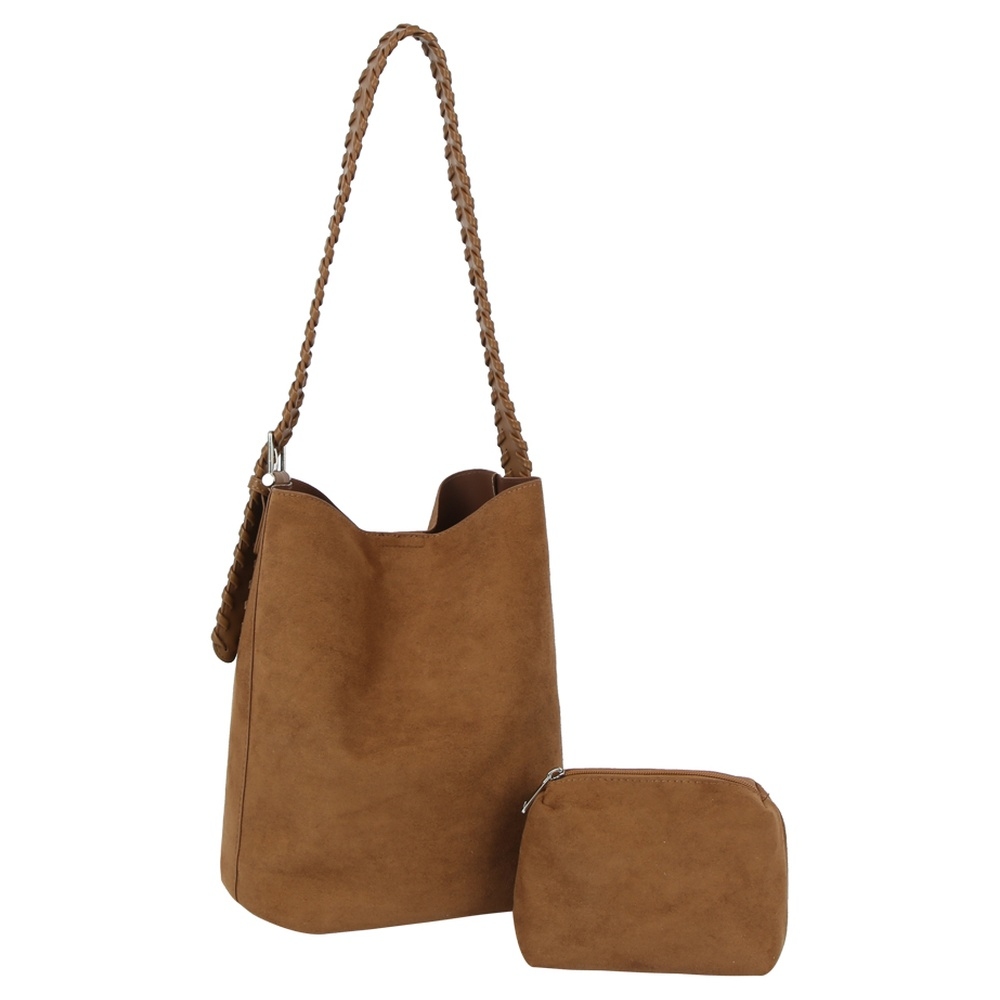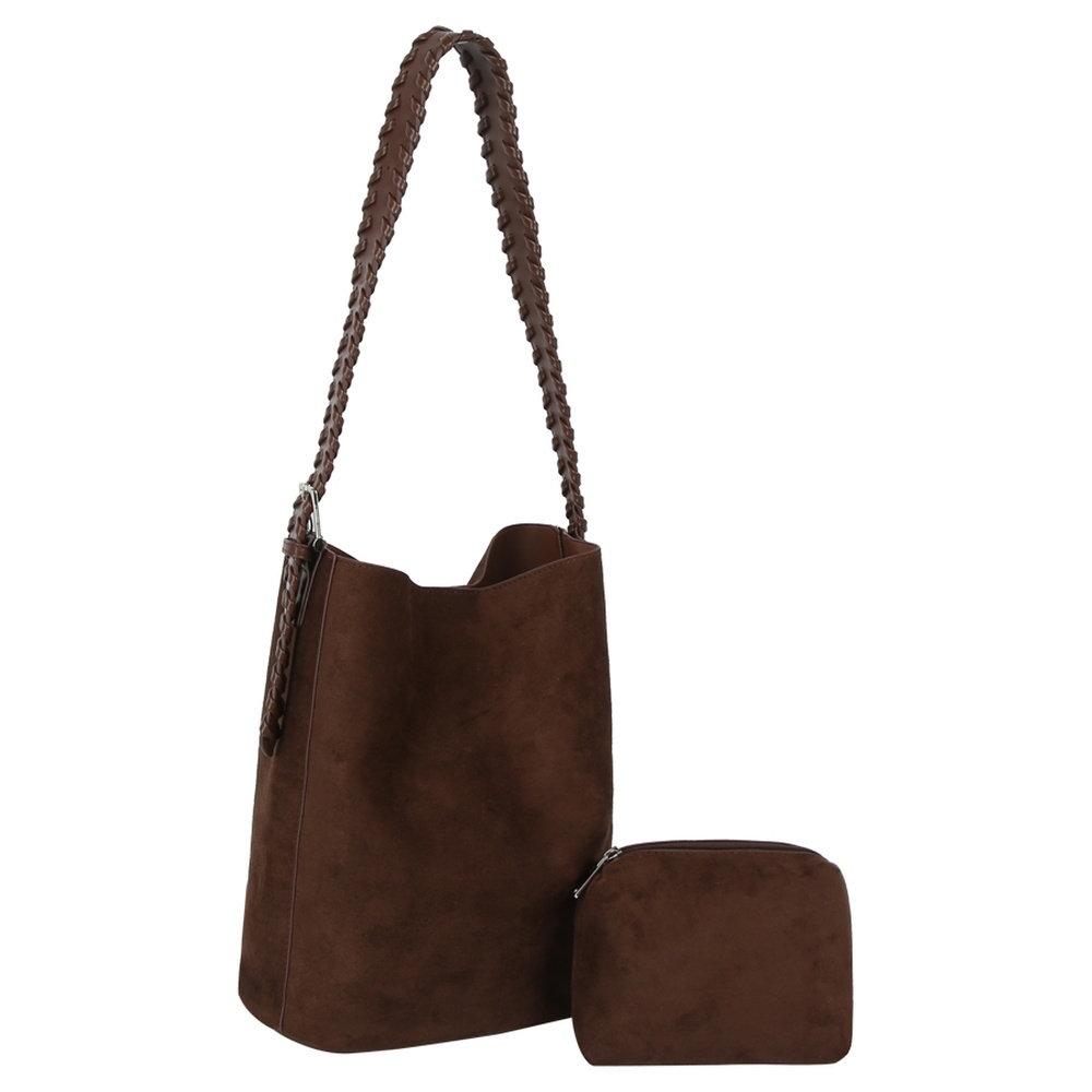• Perfect for any fashion-forward individual, this shoulder bag offers a remarkable faux suede 2 in 1 bucket design. Redefine your wardrobe with this versatile shoulder bag, a timeless addition that brings an air of sophistication to any look. Available in AZTCE, BK, BR, TN, TP. This item is sold in packs of 1.