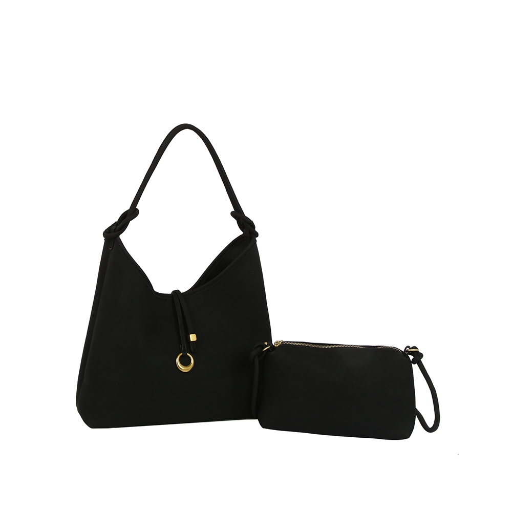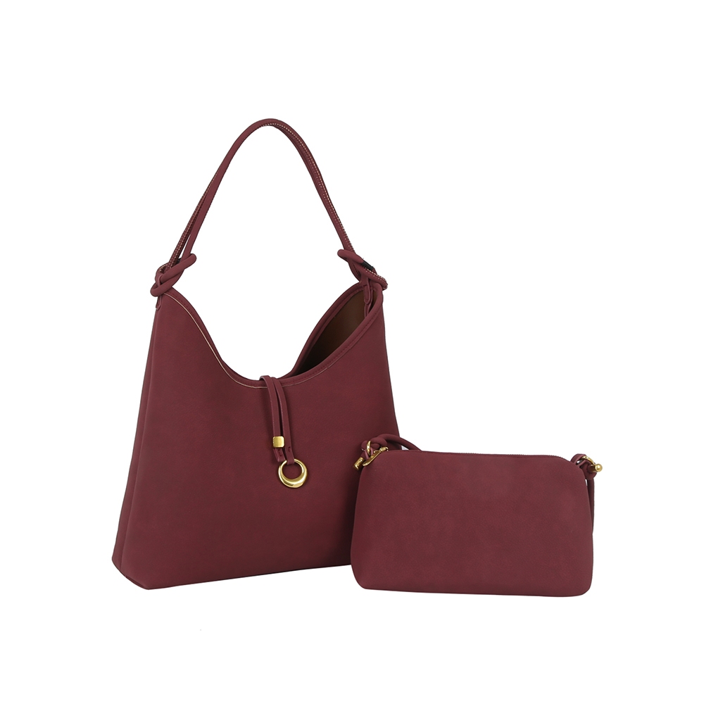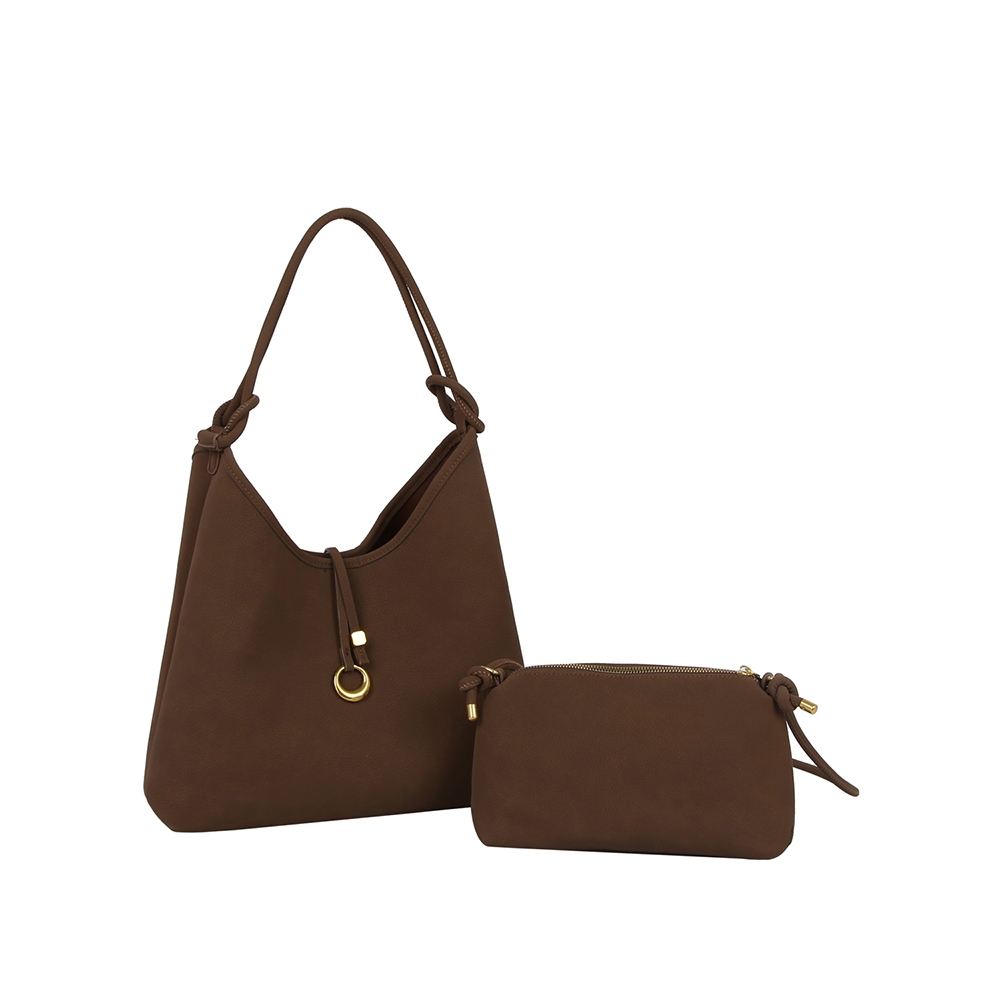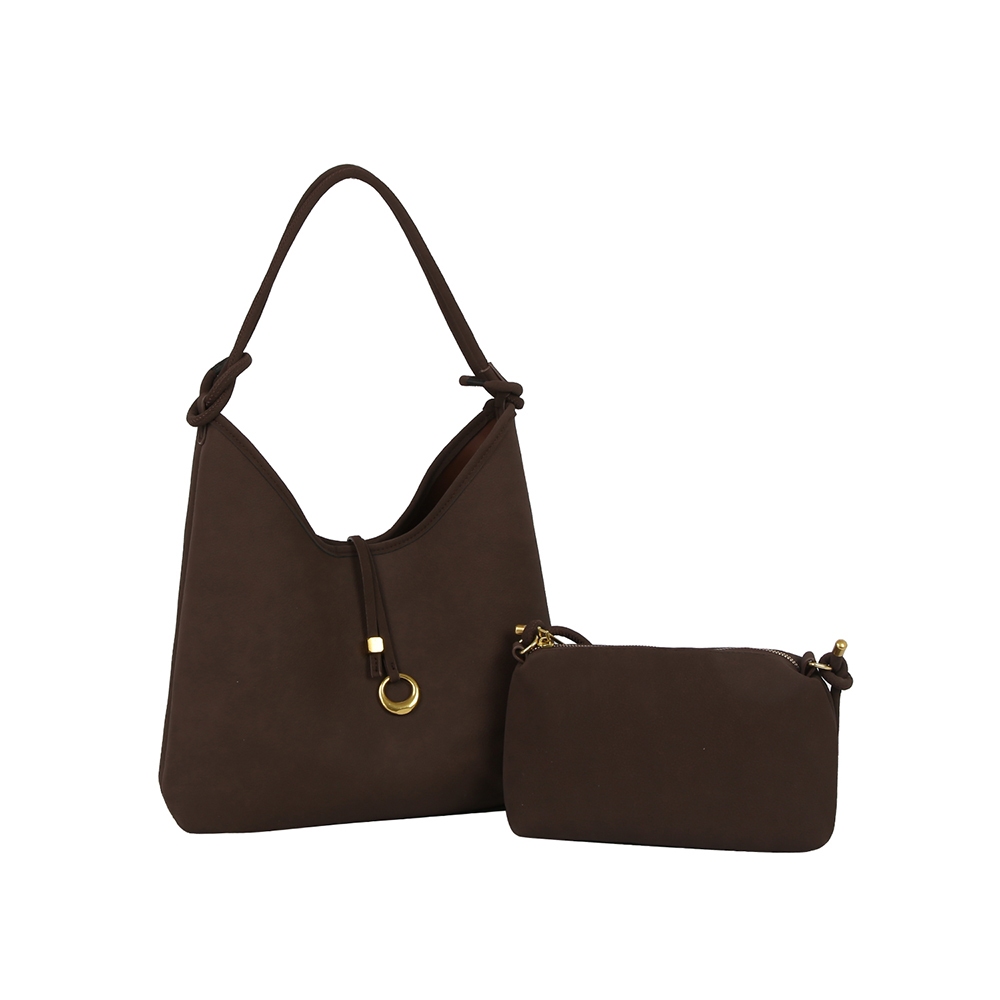 Sleek and modern, this shoulder bag shows off a distinctive faux suede 2 in 1 design. Perfect for adding a pop of color or texture to any outfit, this shoulder bag is a must-have. Available in BK, BR, CF, WN. This item is sold in packs of 1.