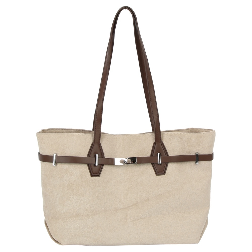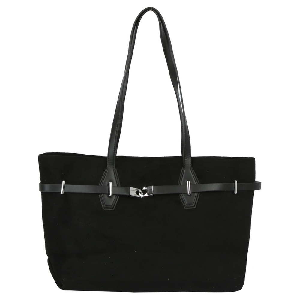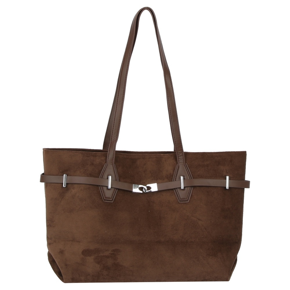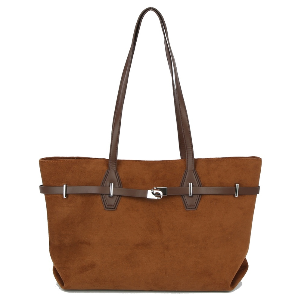 A must-have addition to any tote bag collection, this tote bag evokes a captivating faux suede belted tote shopper design. Infuse a hint of luxury into your daily attire with this versatile tote bag, a must-have for those who appreciate timeless elegance. Available in BK, BR, CF, ST. This item is sold in packs of 1.