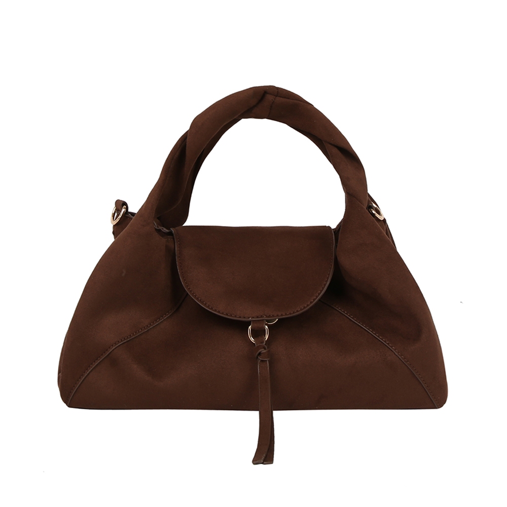 This season's must-have hand bag, this hand bag contains a special faux suede flap satchel design. A must-have hand bag that adds a unique flair to any look. Available in BD, BK, BR, CF, MC, OLV. This item is sold in packs of 1.