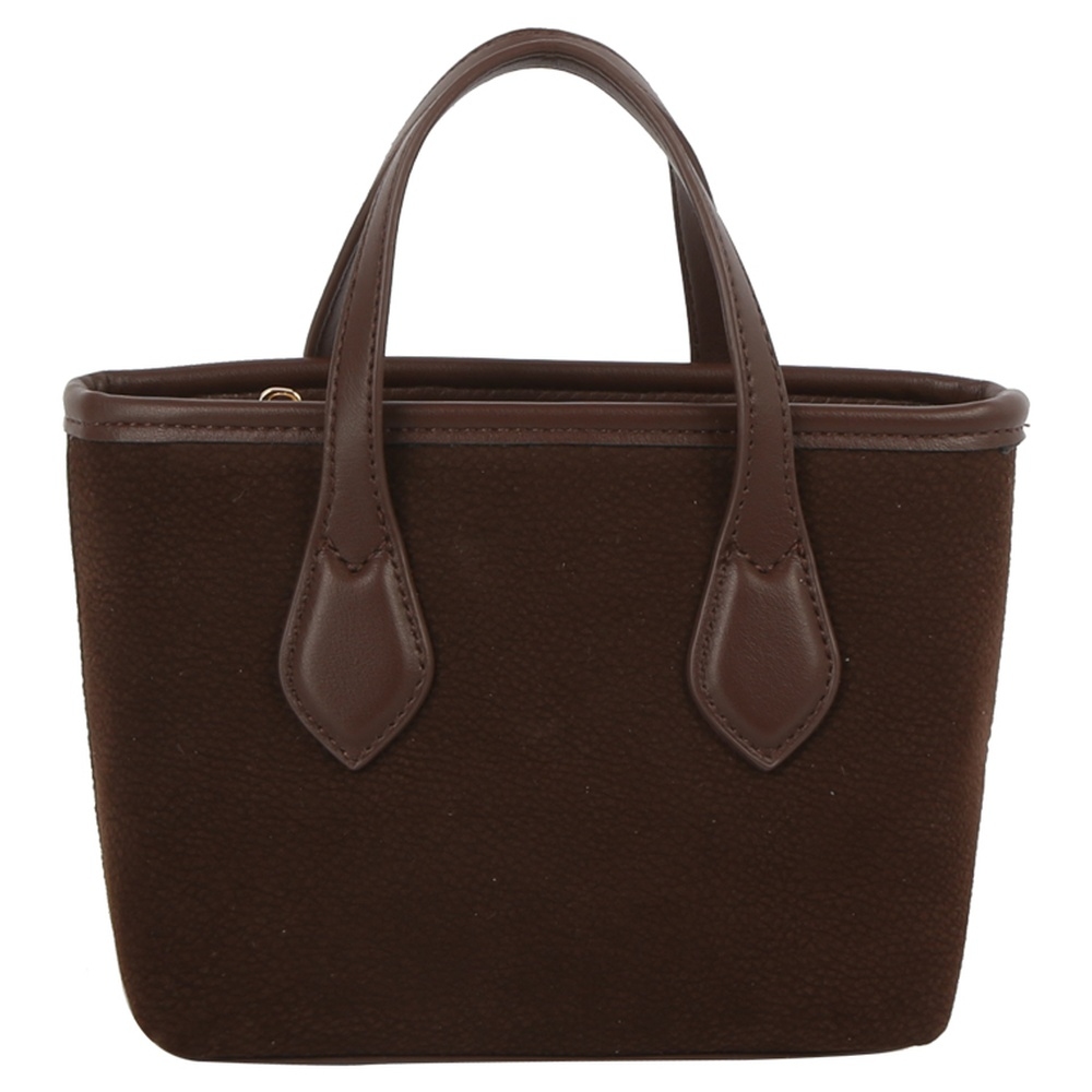 A must-have addition to any tote bag collection, this tote bag incorporates a flawless faux suede top handle tote satchel design. The perfect way to elevate any outfit, this tote bag adds a touch of elegance and style. Available in BD, BK, BR, CF, ST. This item is sold in packs of 1.