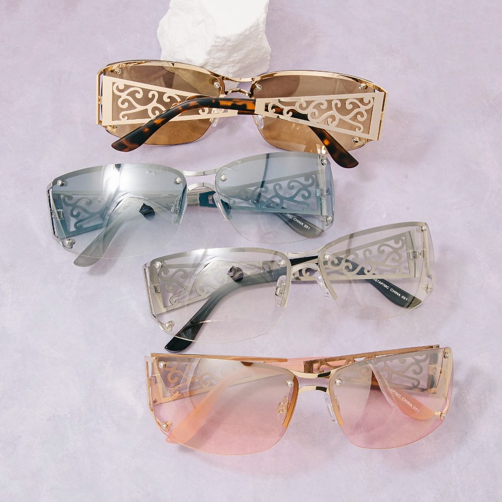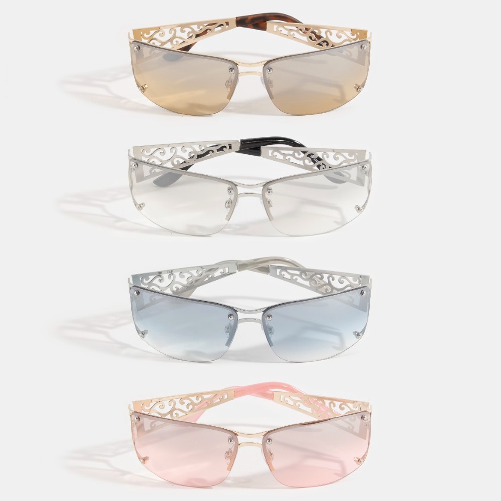 Add a touch of elegance and glamour to your look, this set of sunglasses radiates a sleek filigree scrollwork frame shield sunglasses design. A stylish set of sunglasses that's perfect for complementing any outfit you wear. Available in ASSORTED. This item is sold in packs of 12.