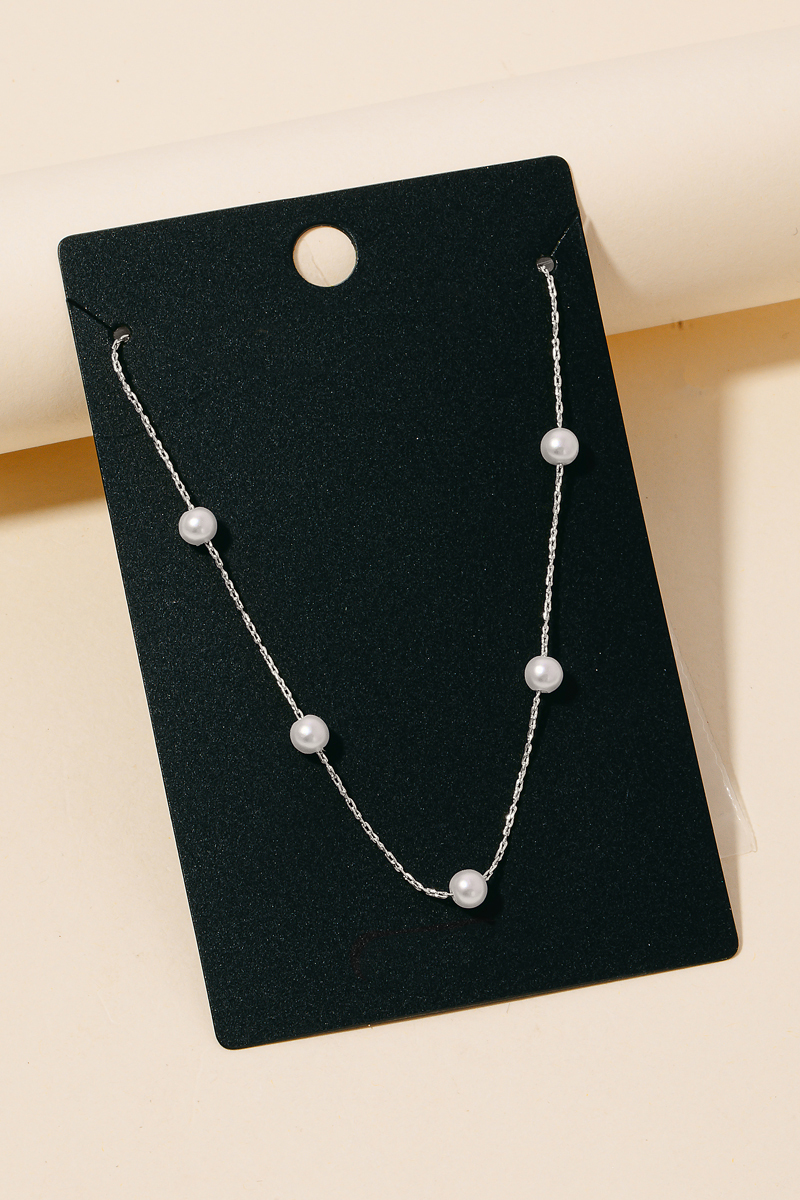 Make a bold statement, this chain necklace encompasses a grand five pearl bead station design. This item is perfect for adding some color and vibrancy to any outfit. Available in S and G. This item is sold in packs of 12.