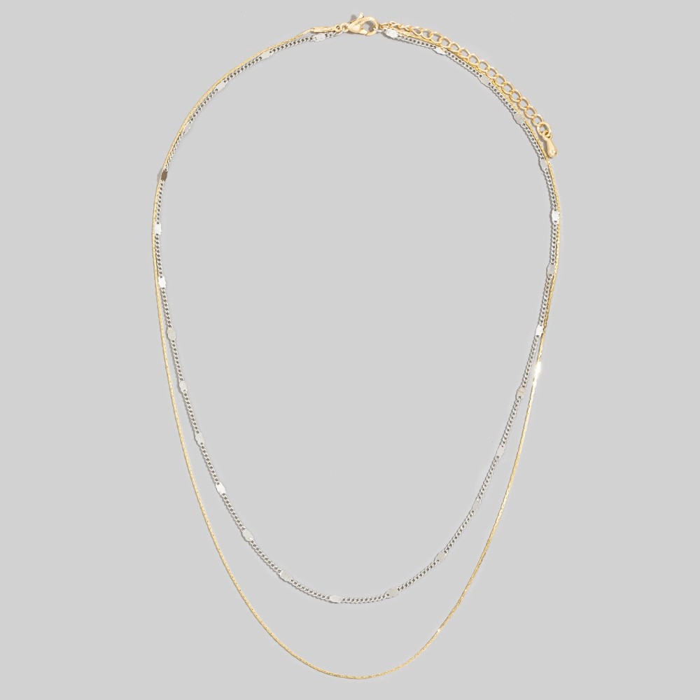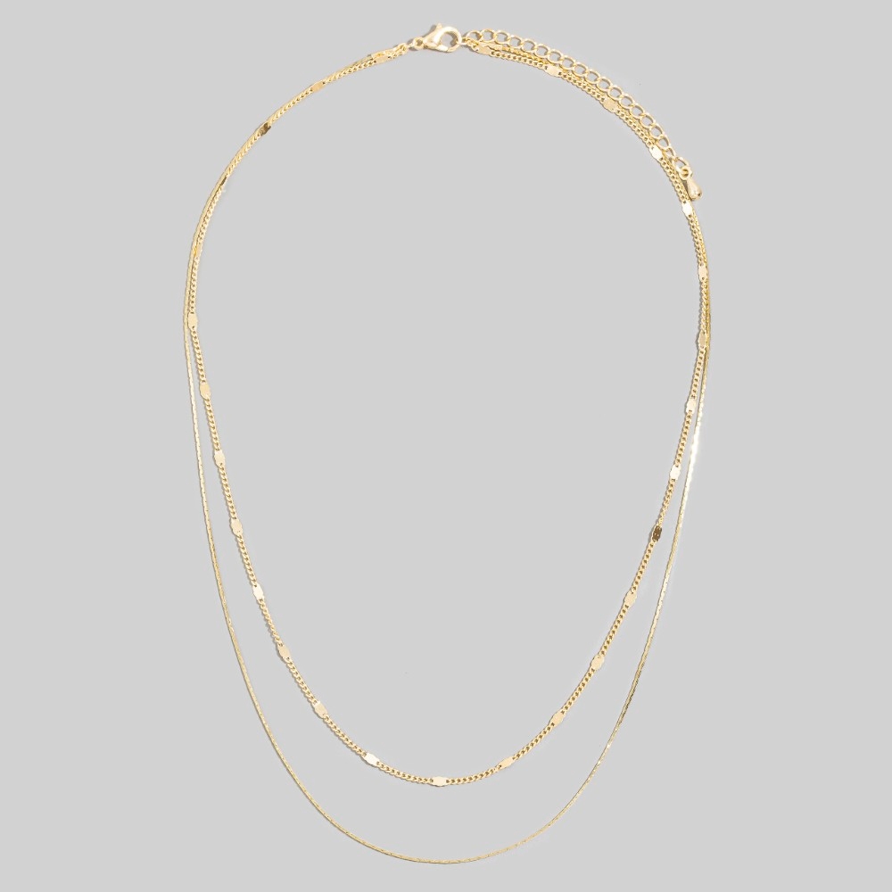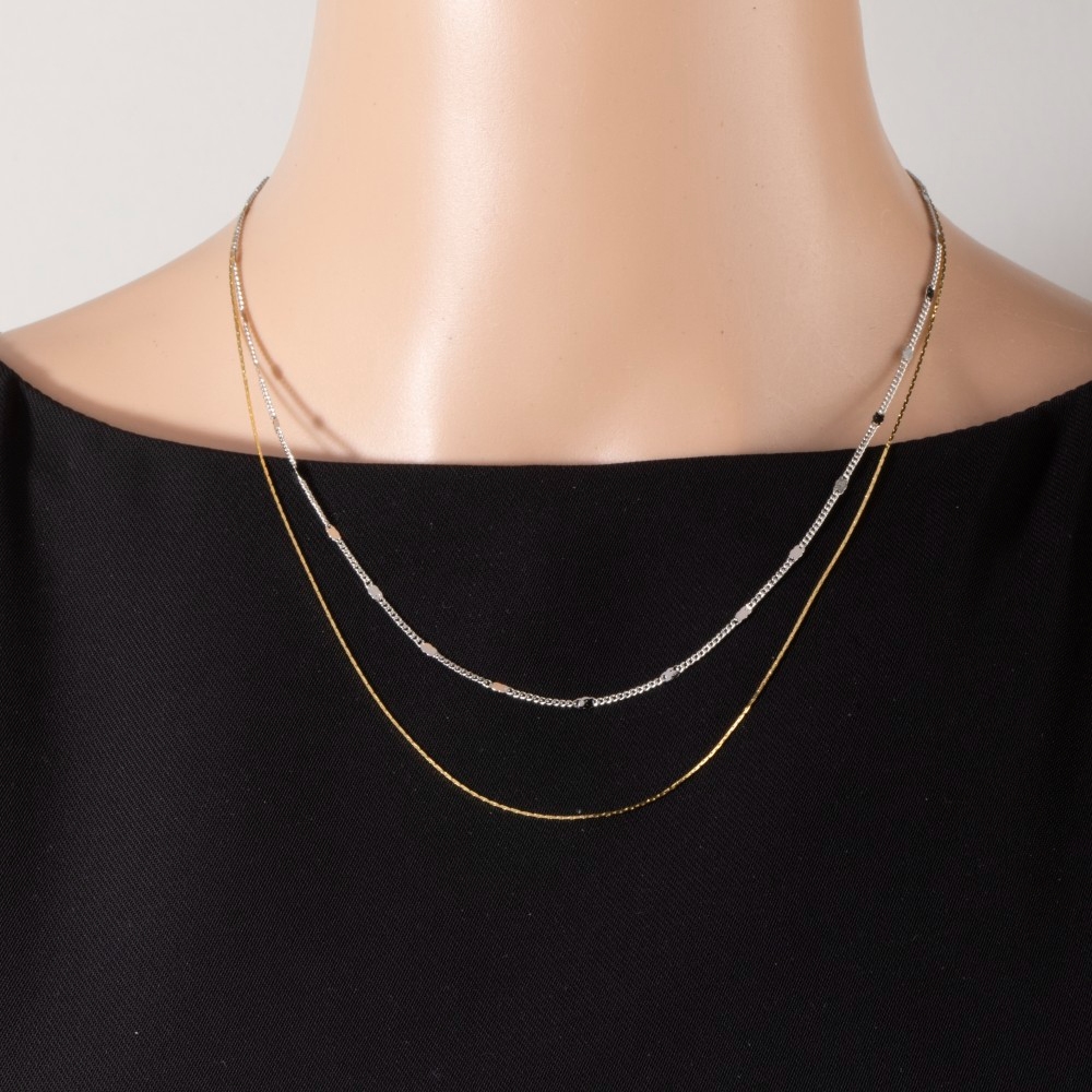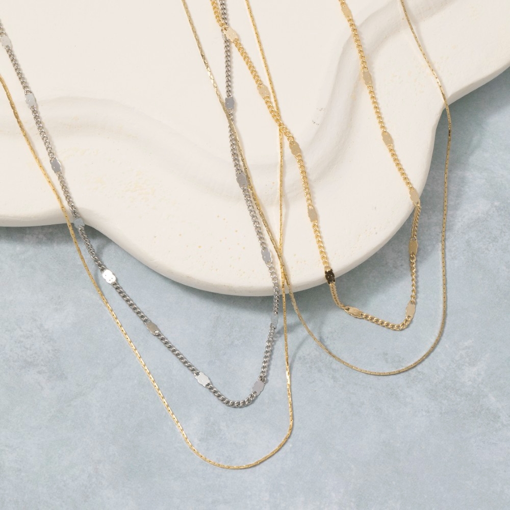 A bold and daring choice that is sure to impress, this chain necklace comes with a special flat disc station double layer necklace design. A must-have chain necklace that adds a unique flair to any look. Available in G, TT. This item is sold in packs of 1.