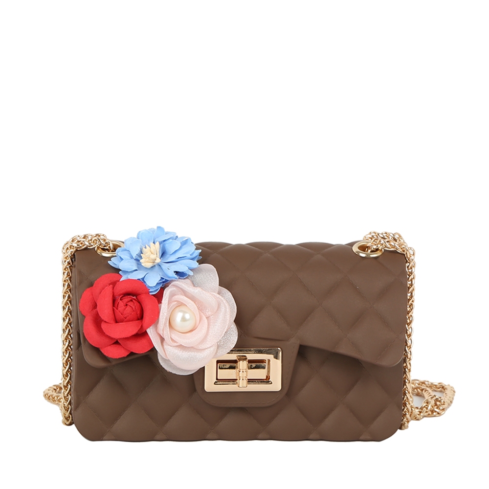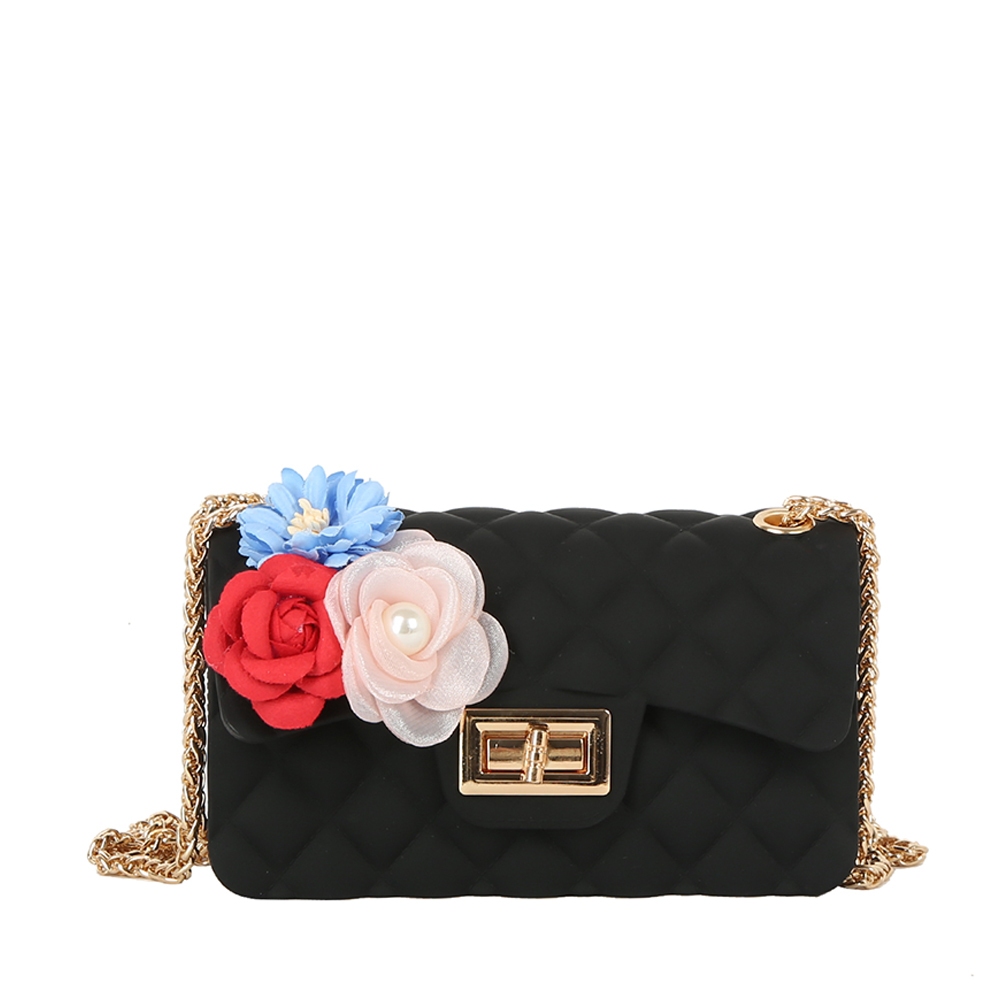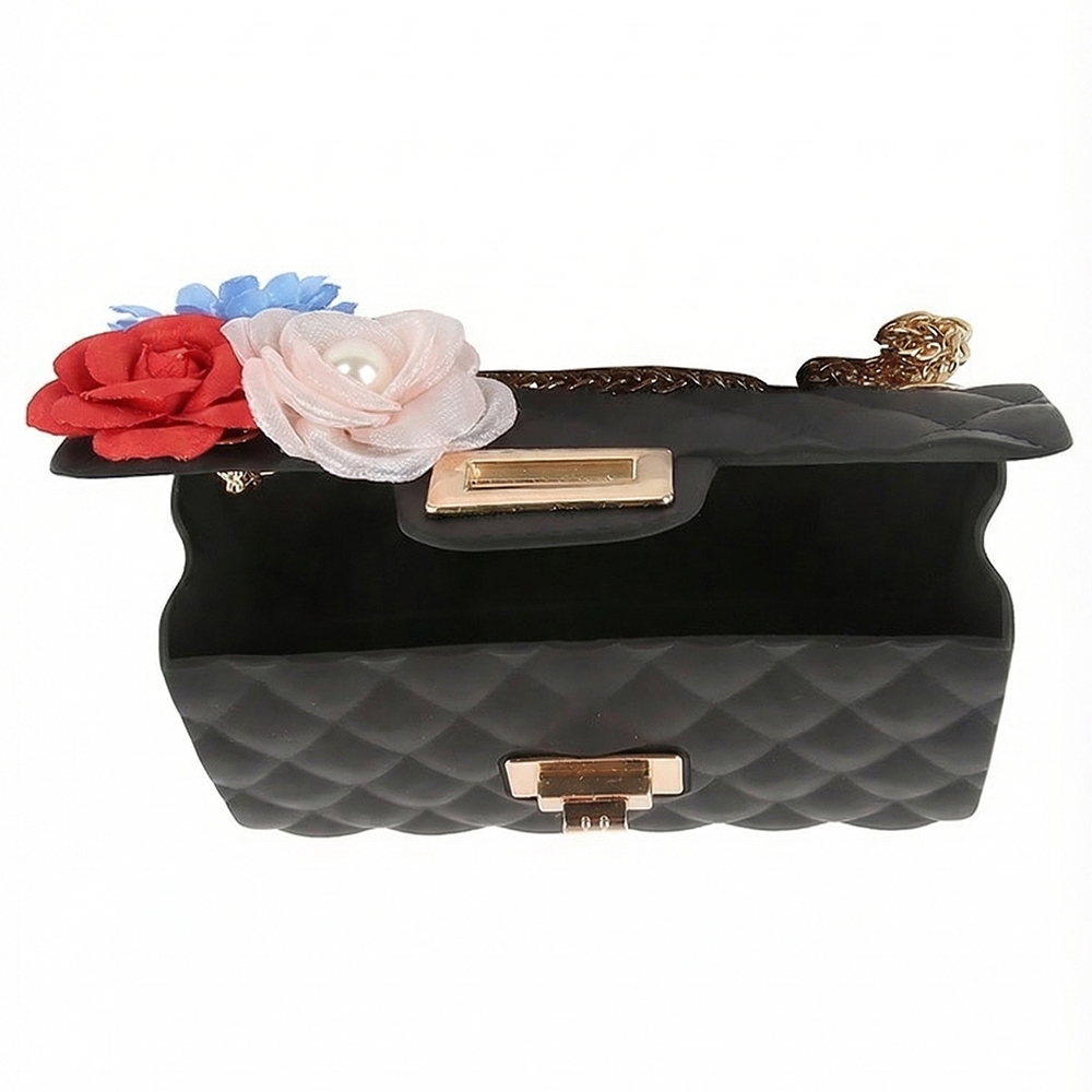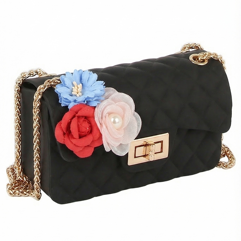 Add some edge to your look, this shoulder bag radiates a sleek floral accent quilted classic design. A must-have shoulder bag that adds a unique flair to any look. Available in BK, BS, CF, CL, RD, WT. This item is sold in packs of 1.