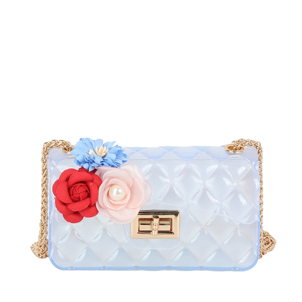 This shoulder bag is made with 100% Pvc.