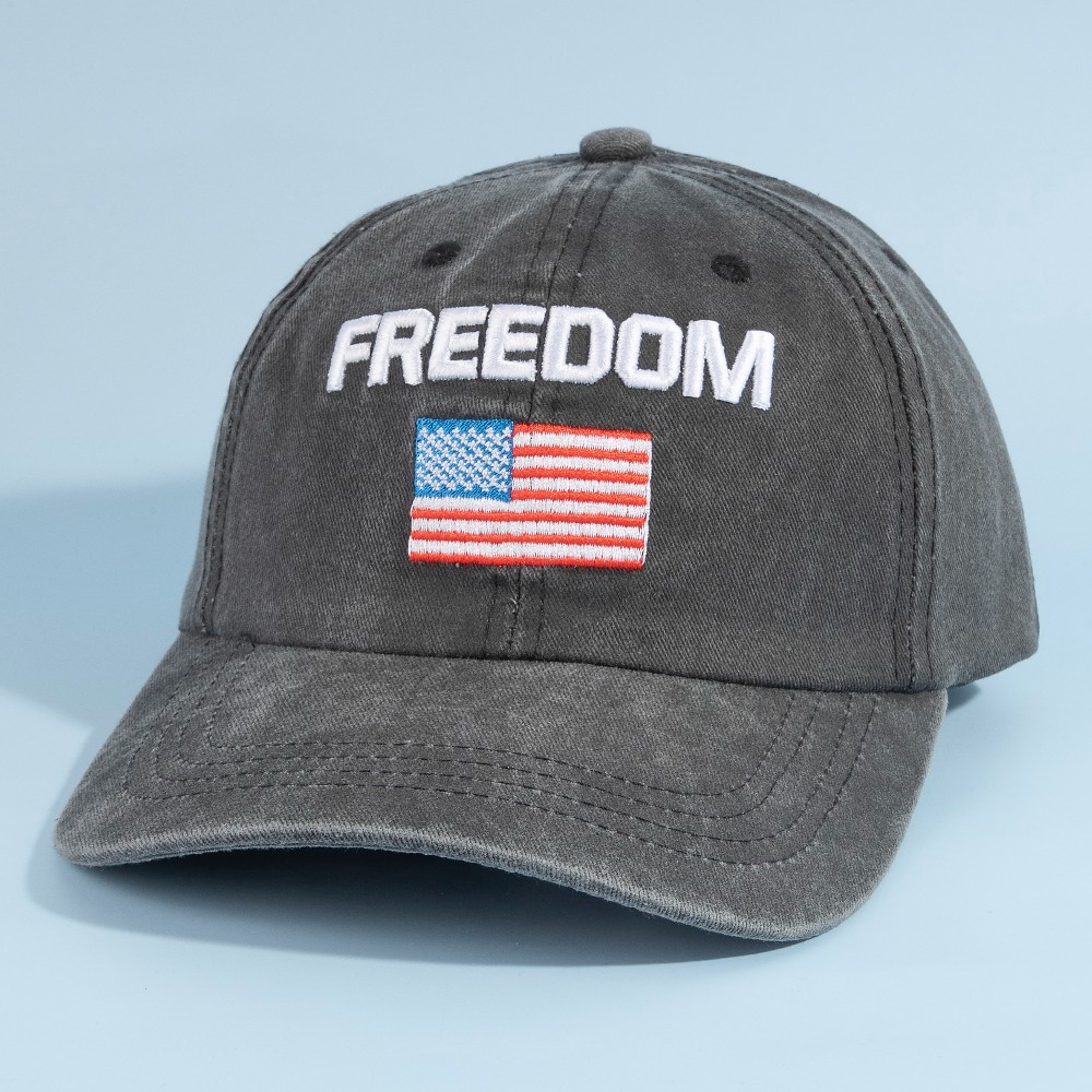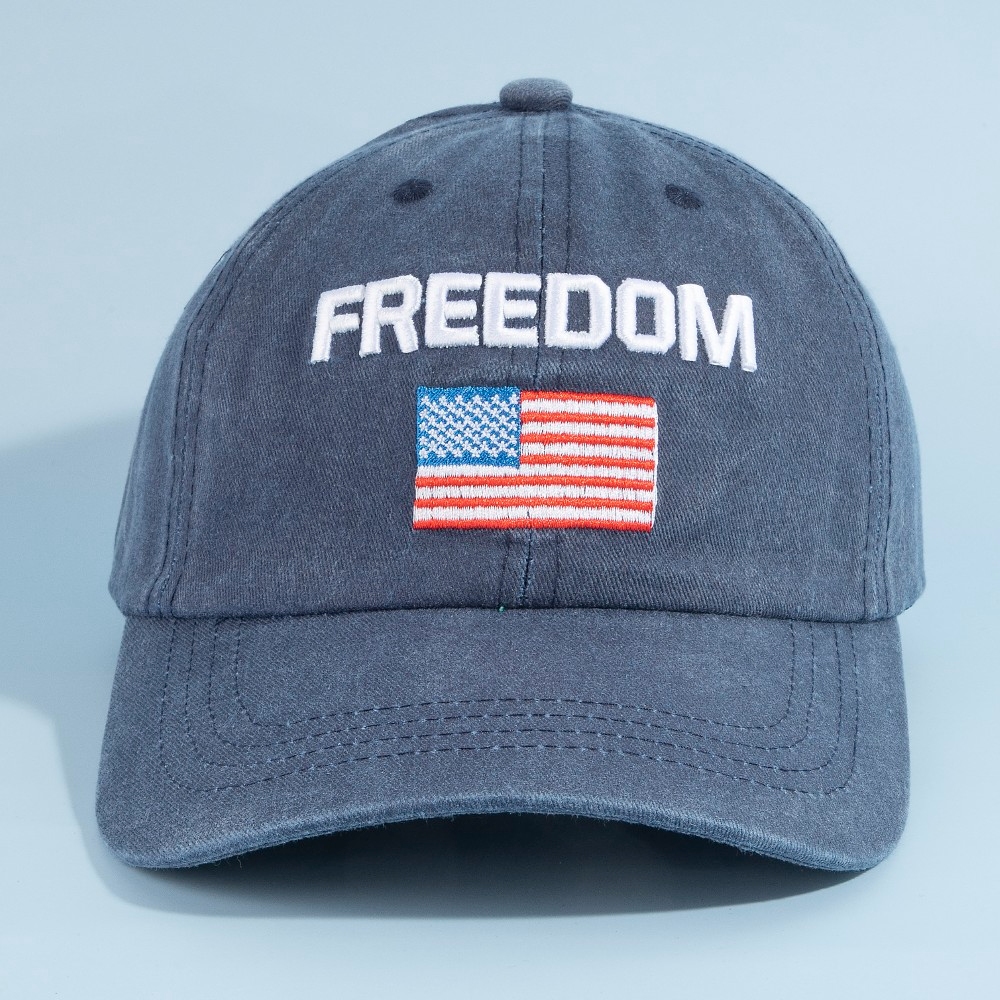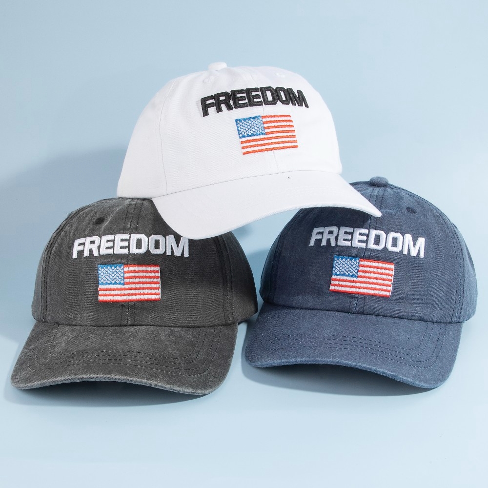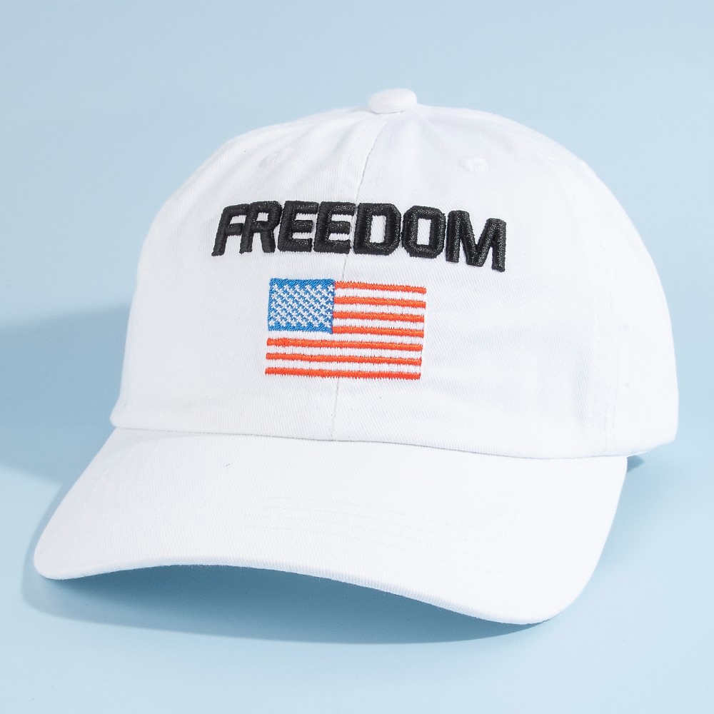 A piece that will never go out of style, this cap exudes a refined freedom american flag embroidered baseball design. Elevate your fashion ensemble effortlessly with this versatile cap, a stylish choice for the modern trendsetter. Available in B, BL, W. This item is sold in packs of 1.